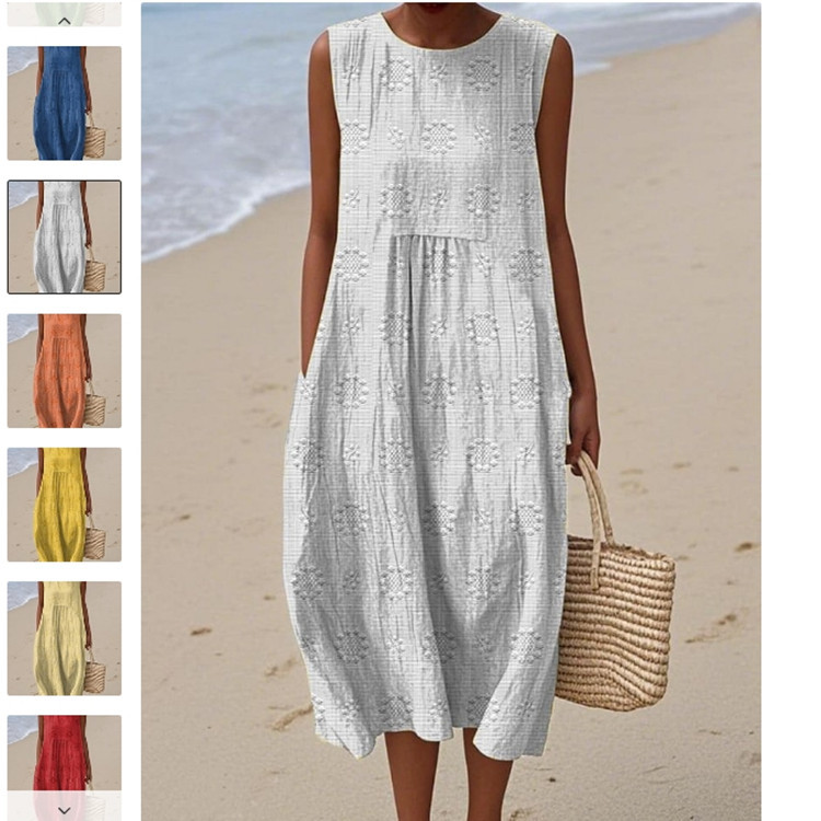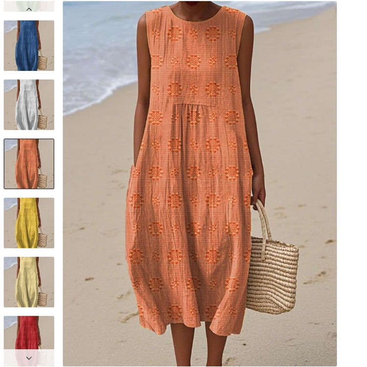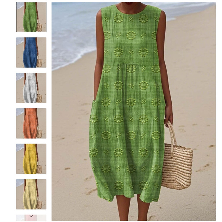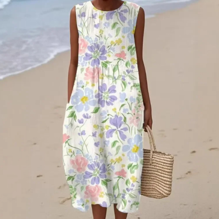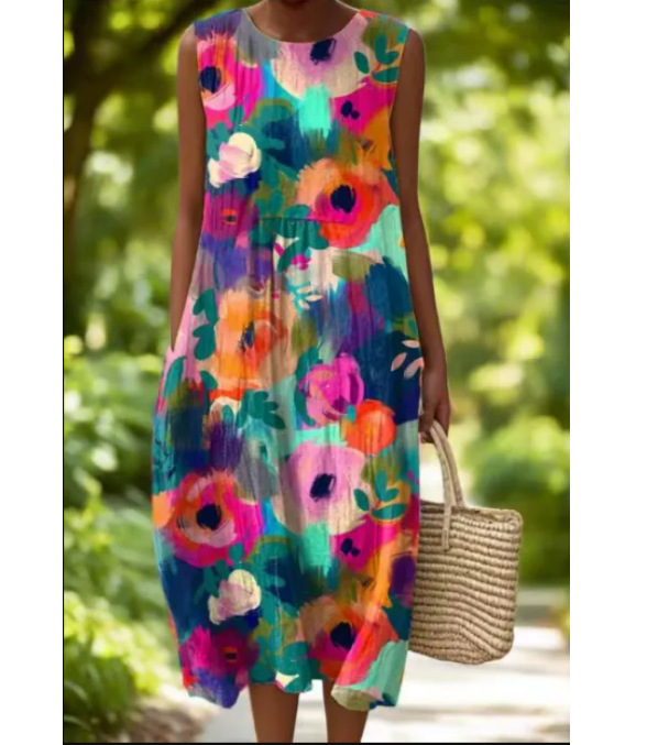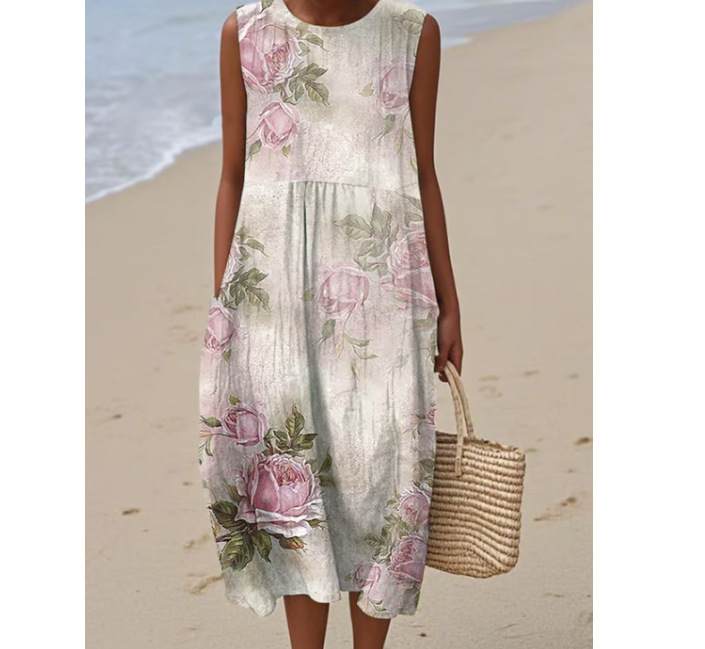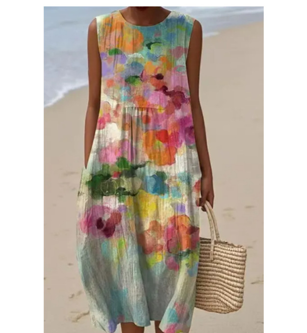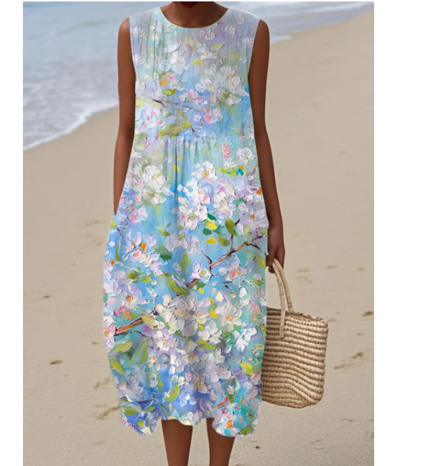 2025 유럽과 미국의 봄 여름 새로운 스타일 민소매 캐주얼 프린트 기질 롱 스커트 드레스 슬림핏 작은 신선한 캐주얼 스커트스토어 가기