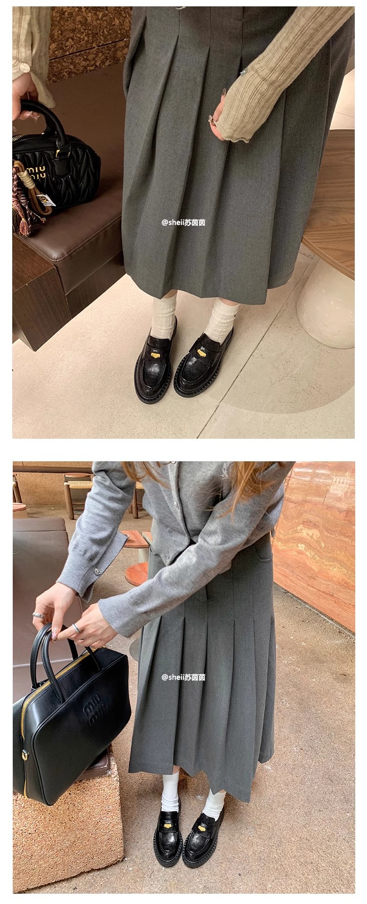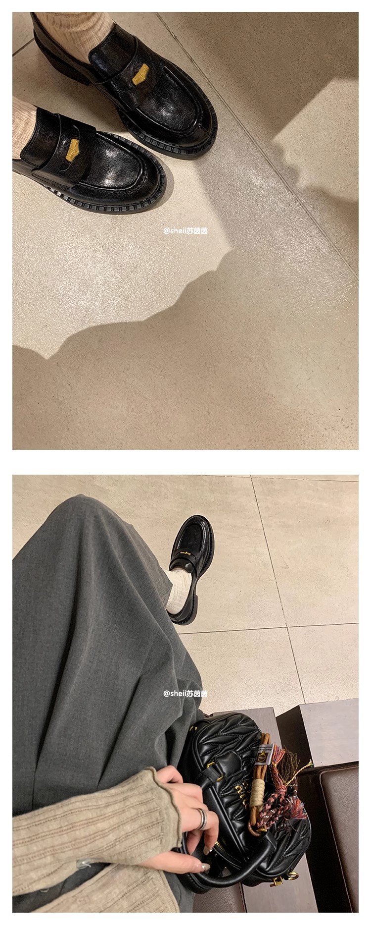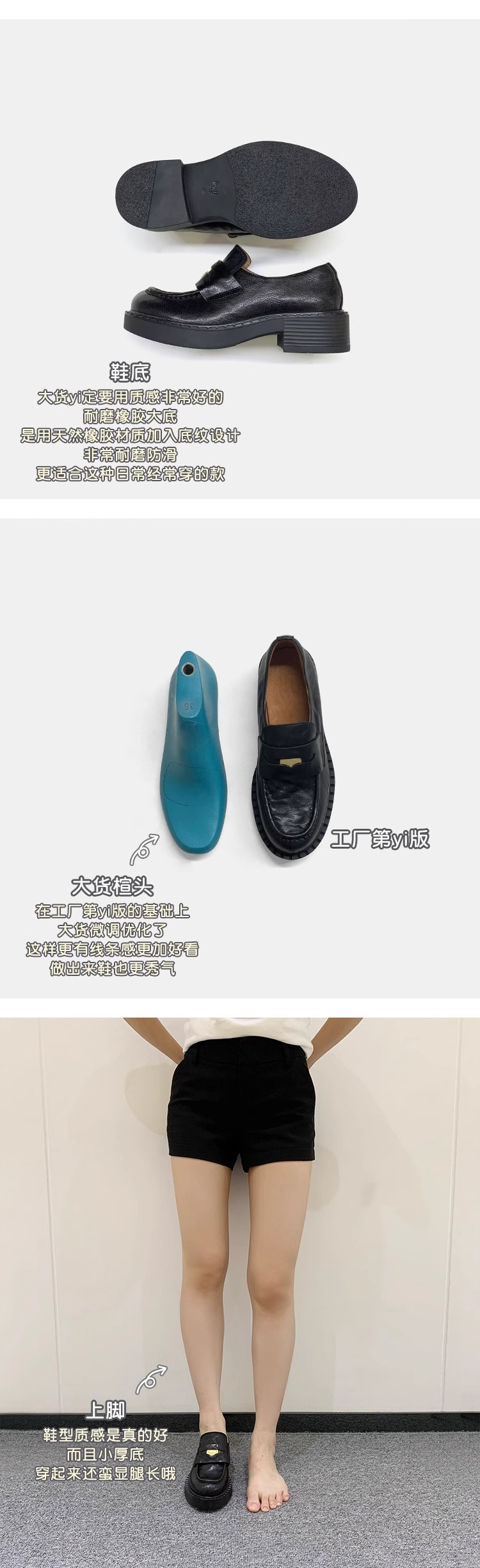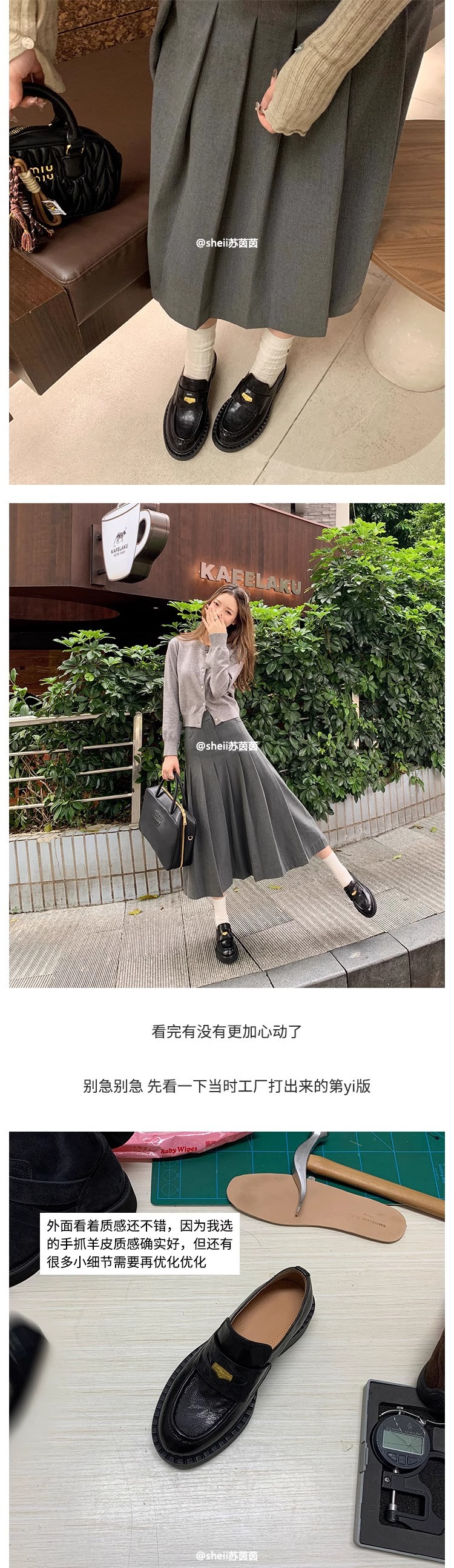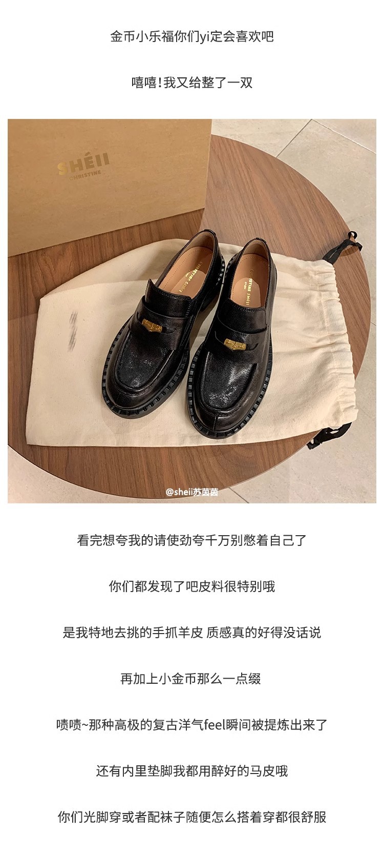 재고 즉시 배송! 봄 가을 동일 스타일 신발, 주름 장식, 작은 동전 무늬, 두꺼운 밑창, 굽이 두꺼운, 슬립온 로퍼, 여성용 가죽 신발스토어 가기