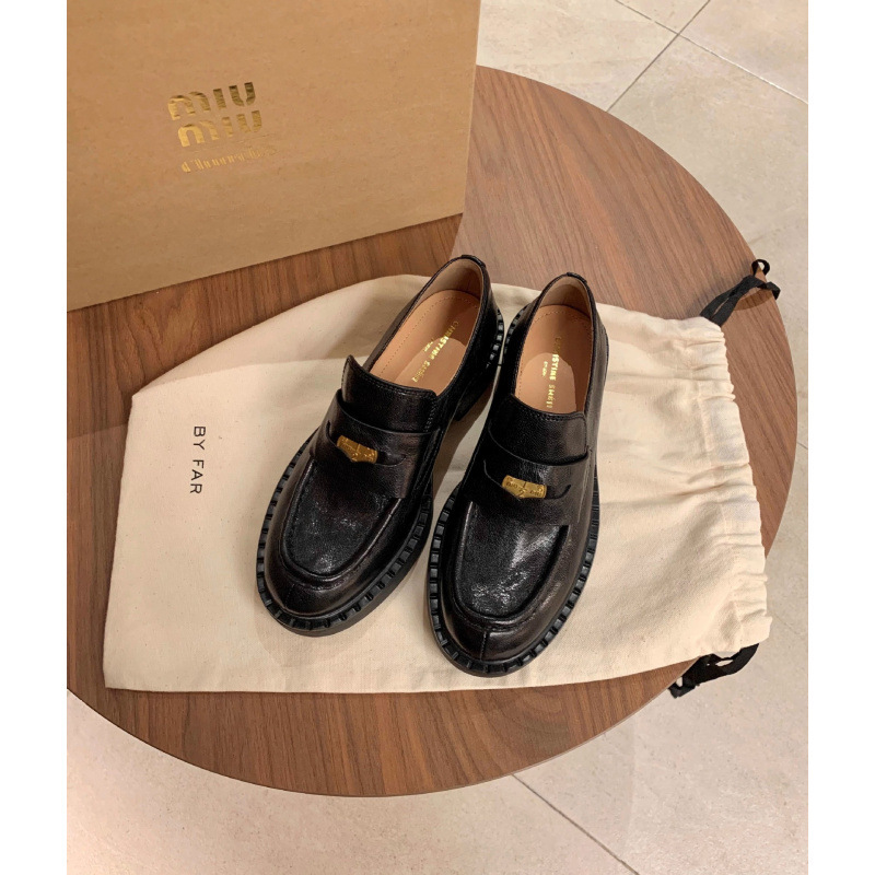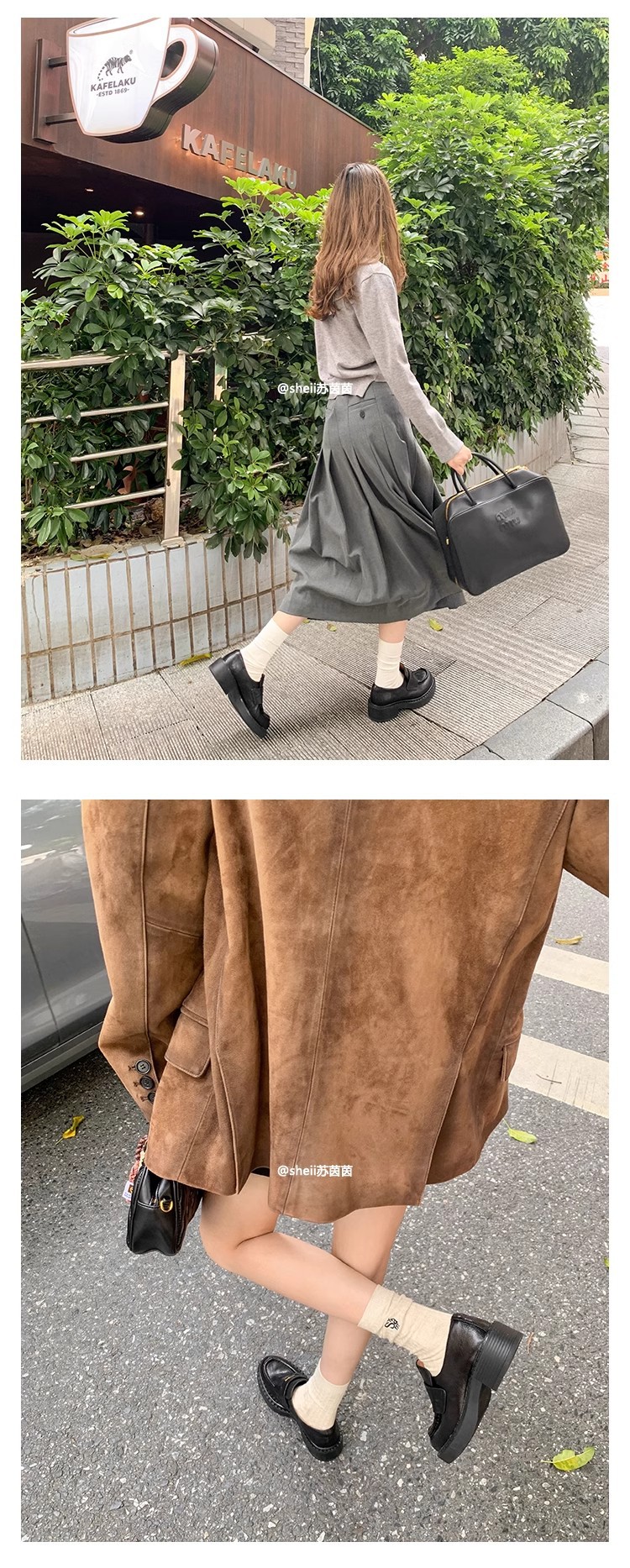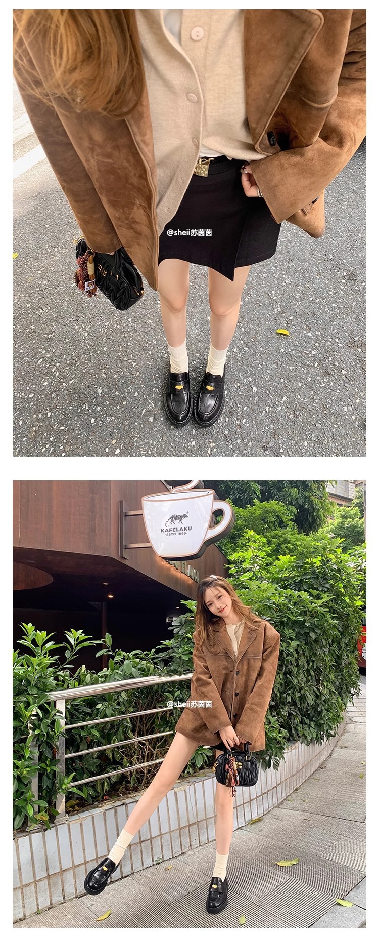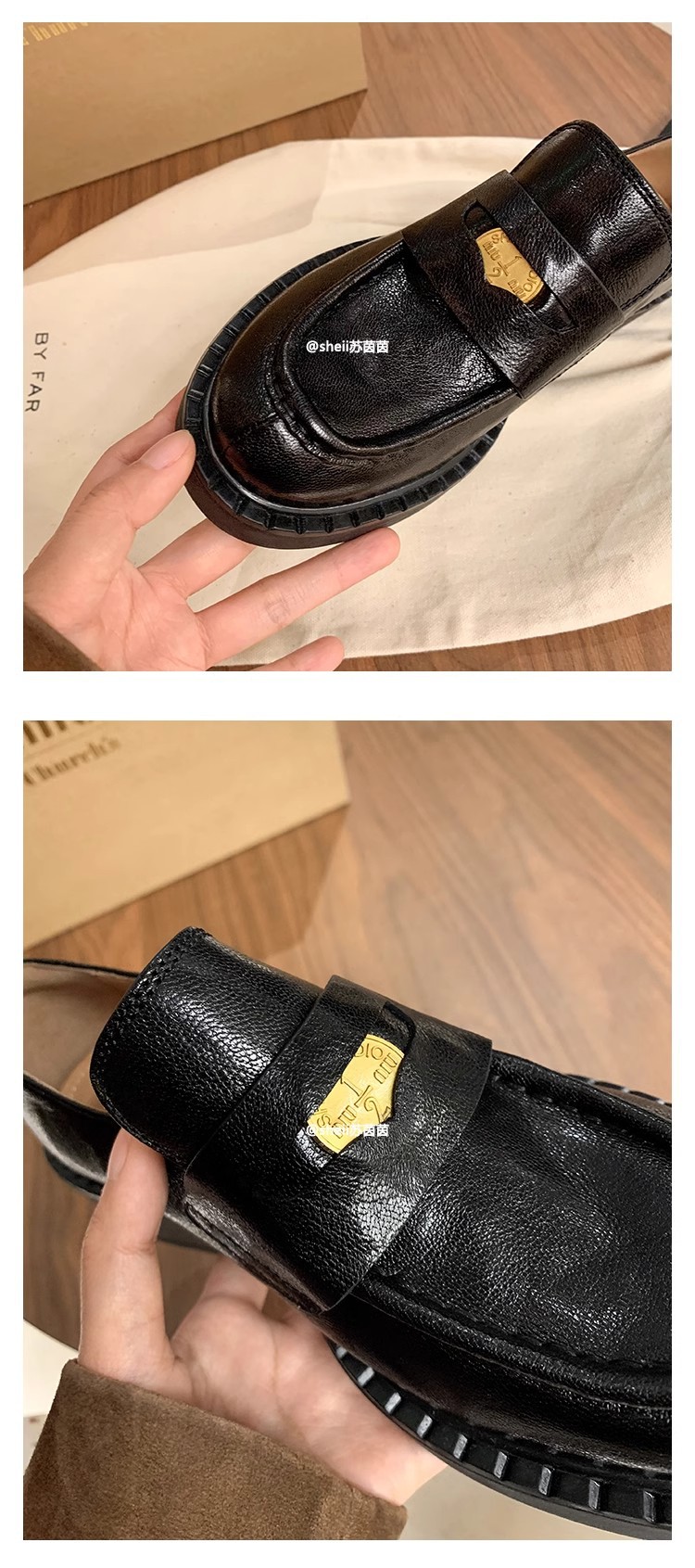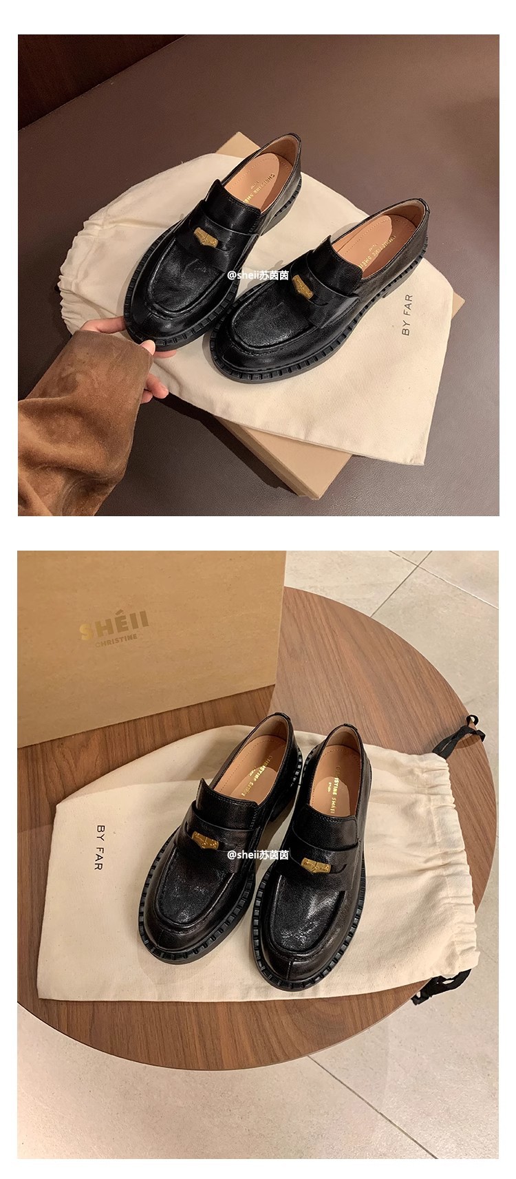 재고 즉시 배송! 봄 가을 동일 스타일 신발, 주름 장식, 작은 동전 무늬, 두꺼운 밑창, 굽이 두꺼운, 슬립온 로퍼, 여성용 가죽 신발스토어 가기