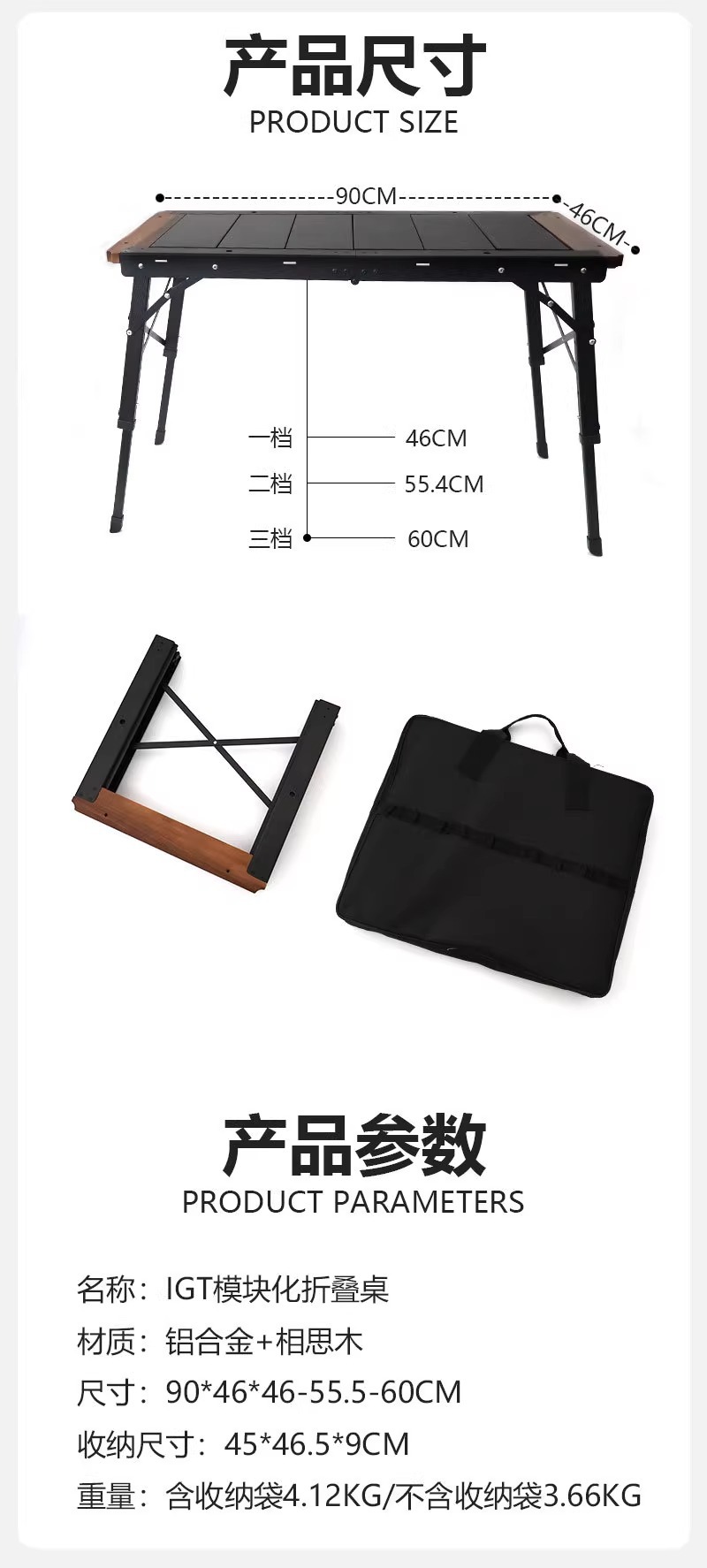야외 접이식 테이블 캠핑 IGT 3 단위 전술 테이블 프레임 다기능 휴대용 3 단 리프팅 피크닉 테이블스토어 가기