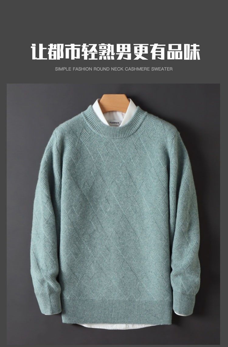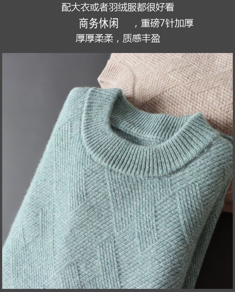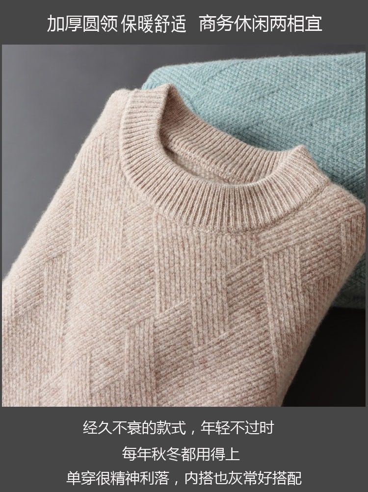 남성 양모 스웨터 느슨한 두꺼운 자카드 크루 넥 스웨터 가을, 겨울 새로운 솔리드 컬러 남성 니트 기본 양모 스웨터스토어 가기