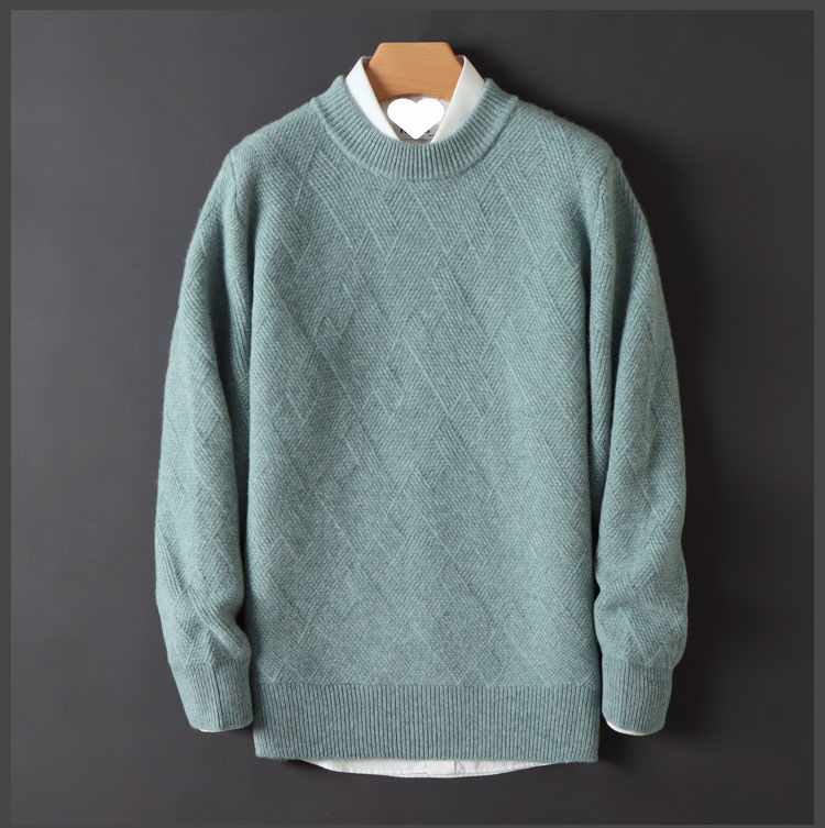 남성 양모 스웨터 느슨한 두꺼운 자카드 크루 넥 스웨터 가을, 겨울 새로운 솔리드 컬러 남성 니트 기본 양모 스웨터