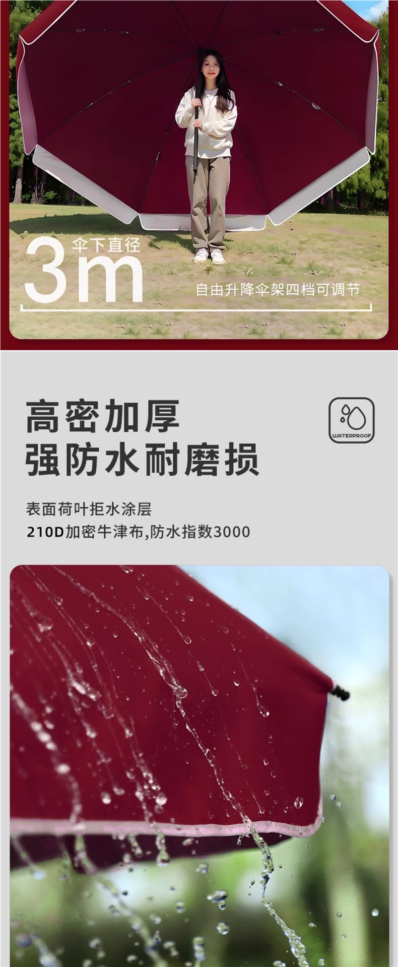 • [이중우산천 + 삼중우산걸이] 3.4m 특대 버건디 - 베이스 포함