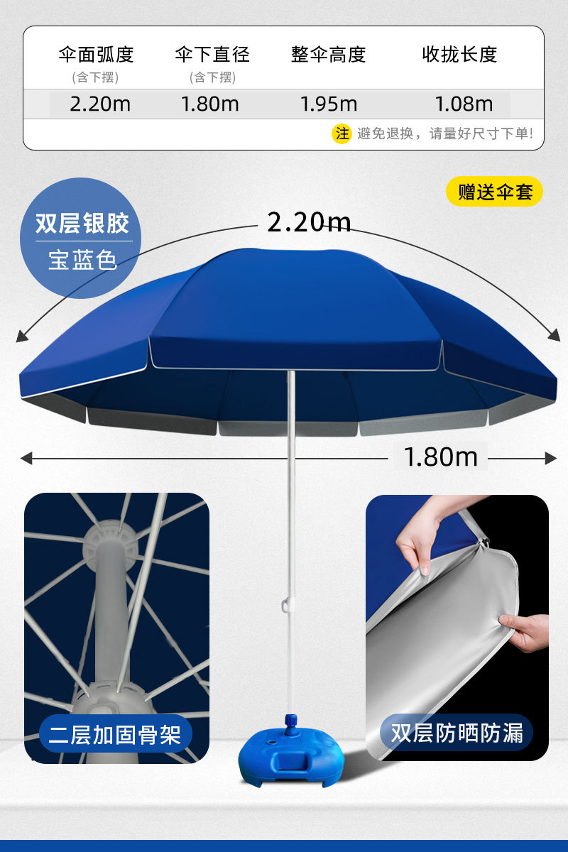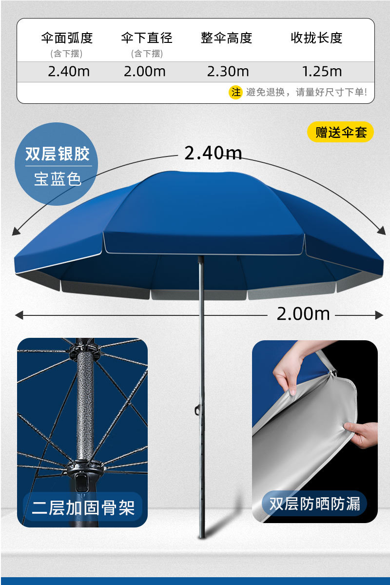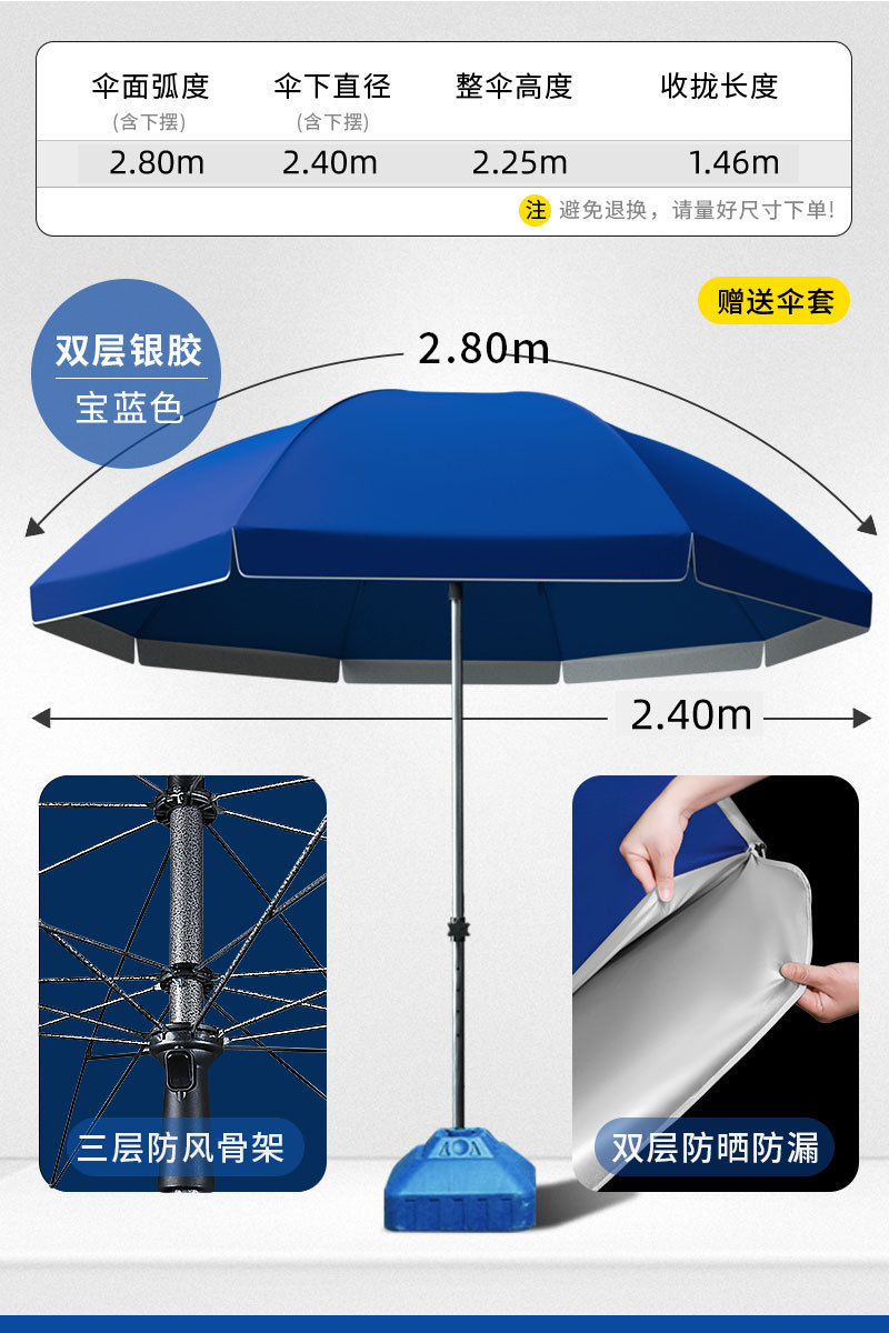 • [이중 우산 천 + 삼중 우산 프레임] 3.6m 특대 사파이어 블루 - 베이스 포함
