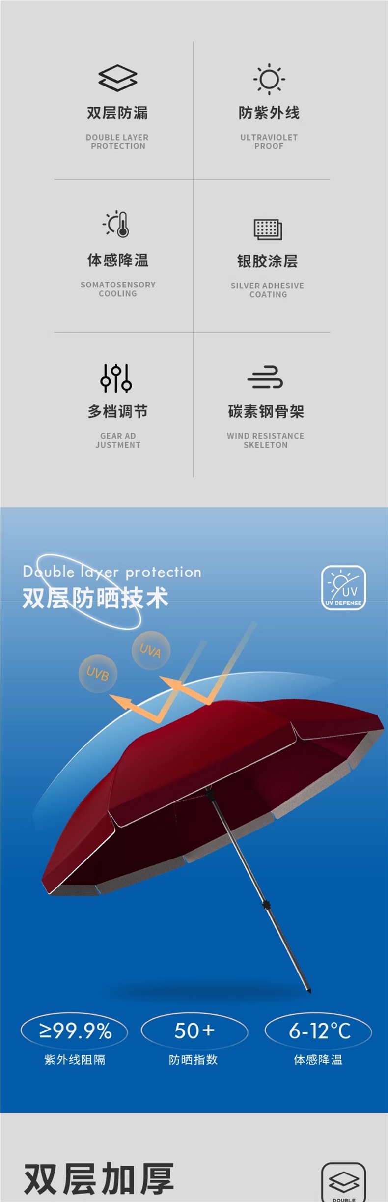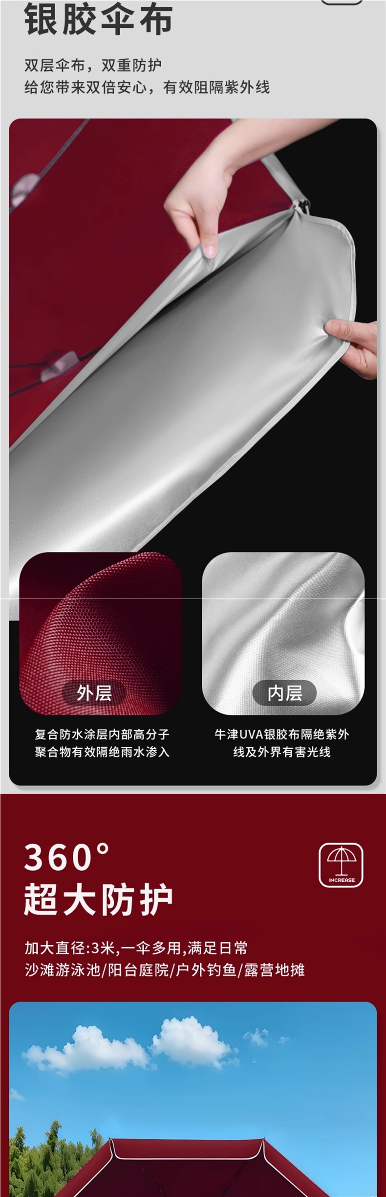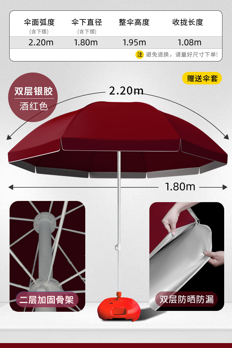 • [이중 자외선 차단 및 누수 방지] 2.2m 스몰 버건디 - 베이스 포함