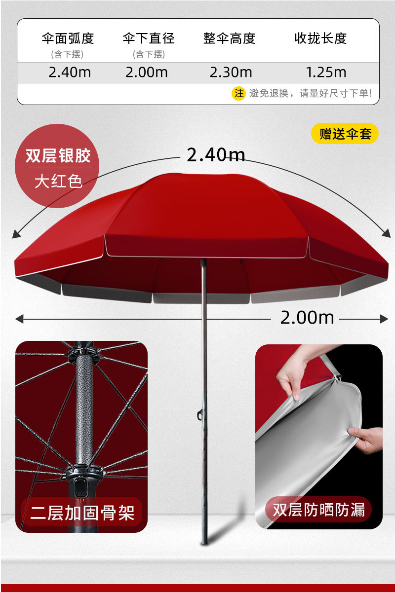• [이중우산천 + 삼중우산걸이] 3.4m 특대 레드 - 베이스 없음