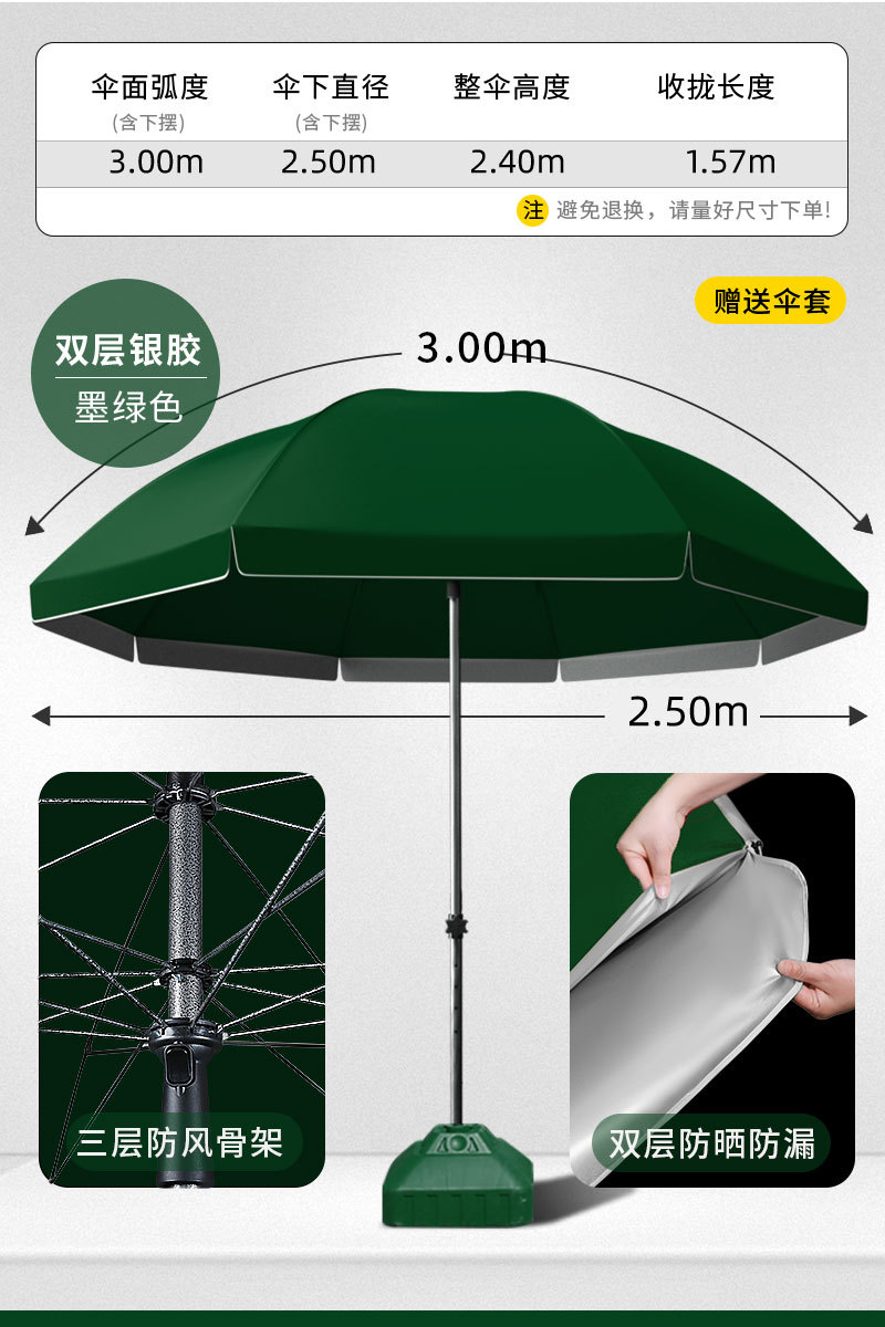 • [이중우산천 + 삼중우산걸이] 3.0m 대형 짙은 녹색 - 베이스 없음