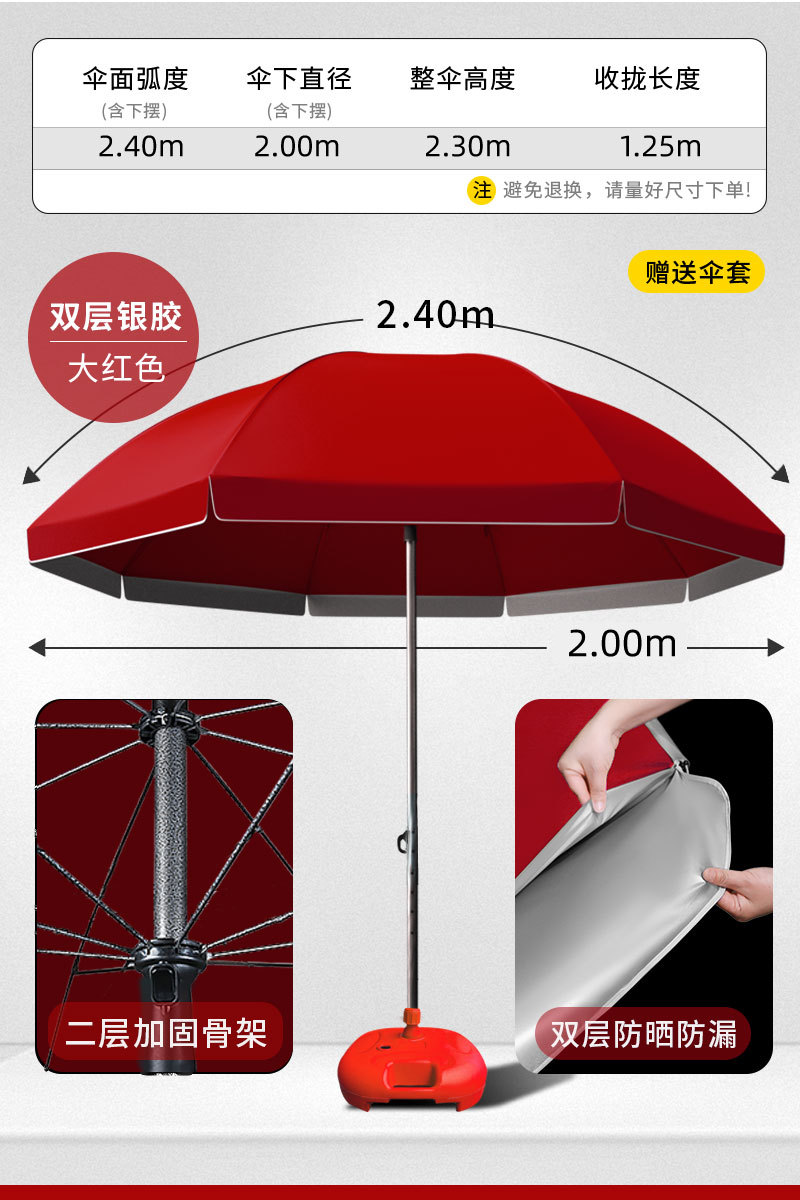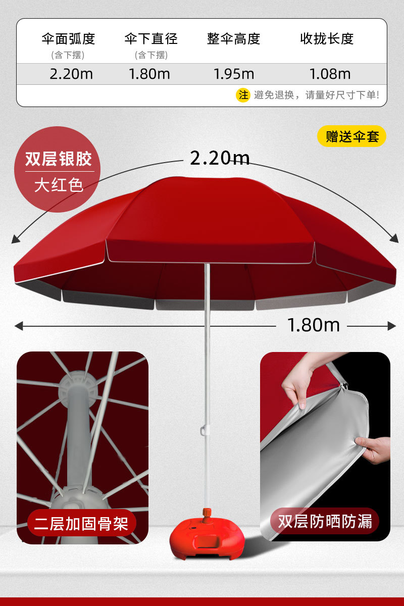 • [이중우산천 + 삼중우산걸이] 3.6m 특대 레드 - 베이스 포함