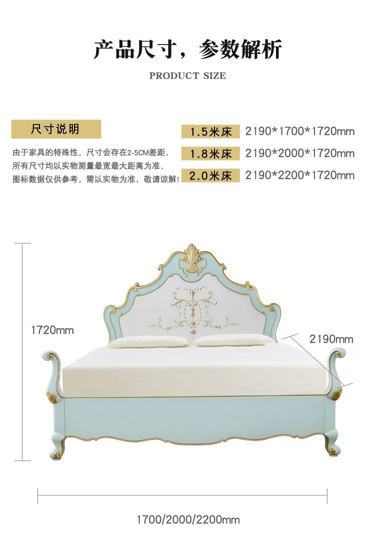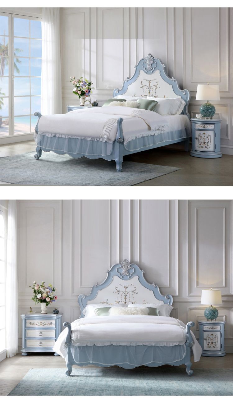 알렉산더 베로나 침실 공주 침대 전체 단단한 나무 럭셔리 현대 순수한 손으로 그린 골드 침대