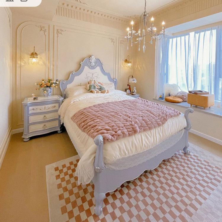 알렉산더 베로나 침실 공주 침대 전체 단단한 나무 럭셔리 현대 순수한 손으로 그린 골드 침대스토어 가기