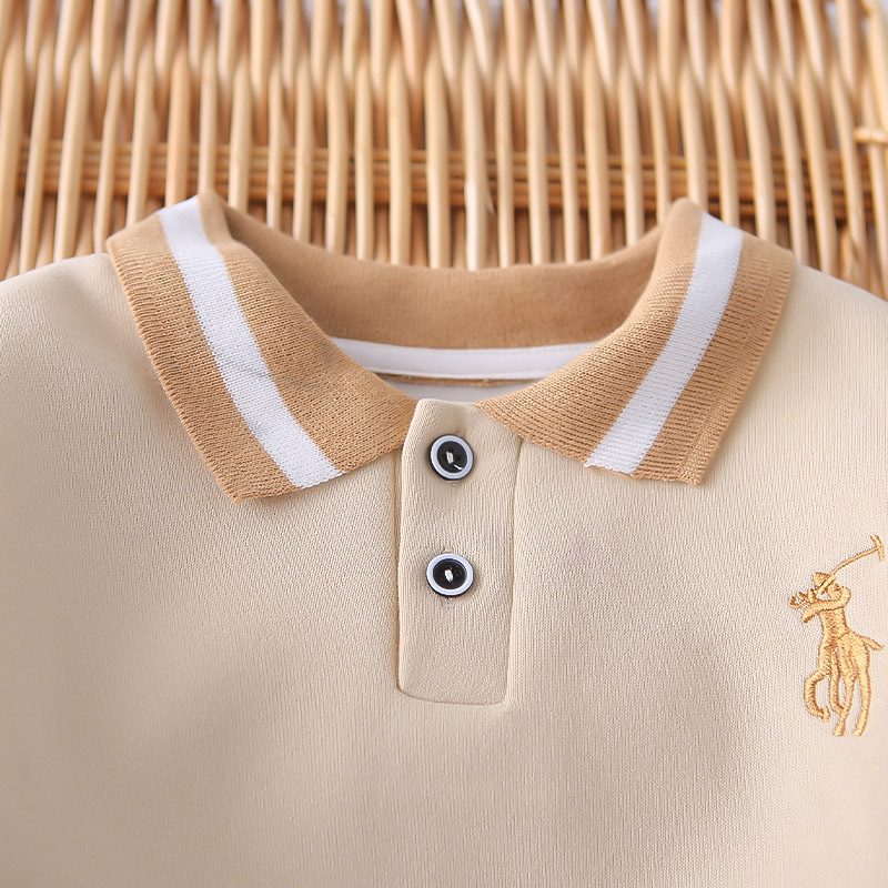 소년 가을 의류 세트 2025 새로운 아기 옷 아동 의류 가을 수 놓은 폴로 셔츠 유행 봄, 가을 소년