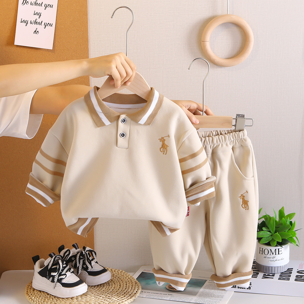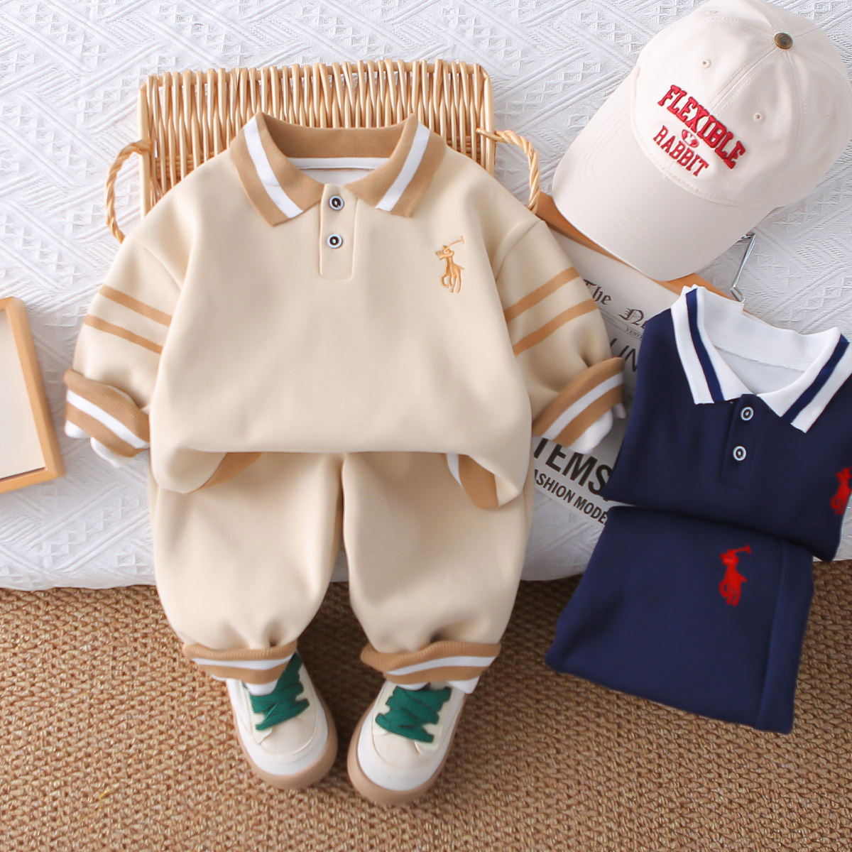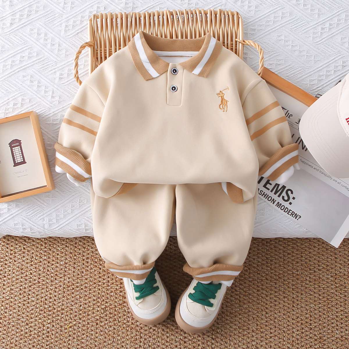 소년 가을 의류 세트 2025 새로운 아기 옷 아동 의류 가을 수 놓은 폴로 셔츠 유행 봄, 가을 소년스토어 가기