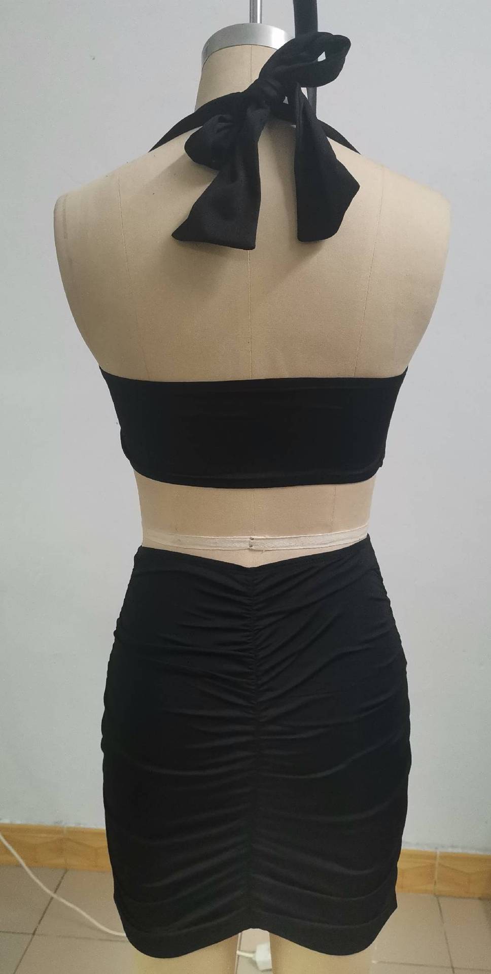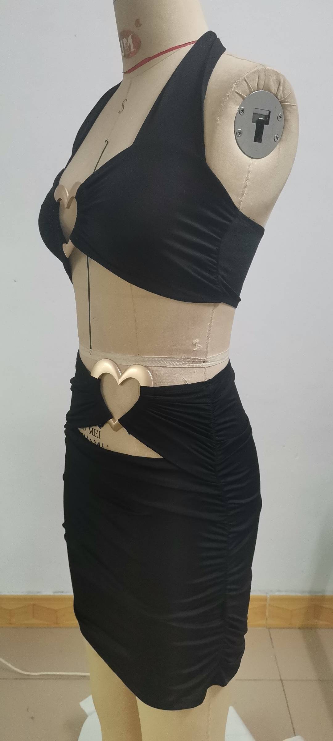 G25S057-2025 유럽과 미국의 새로운 섹시한 핫 소녀 홀터넥 러브 메탈 버클 중공 탑 스커트 슈트