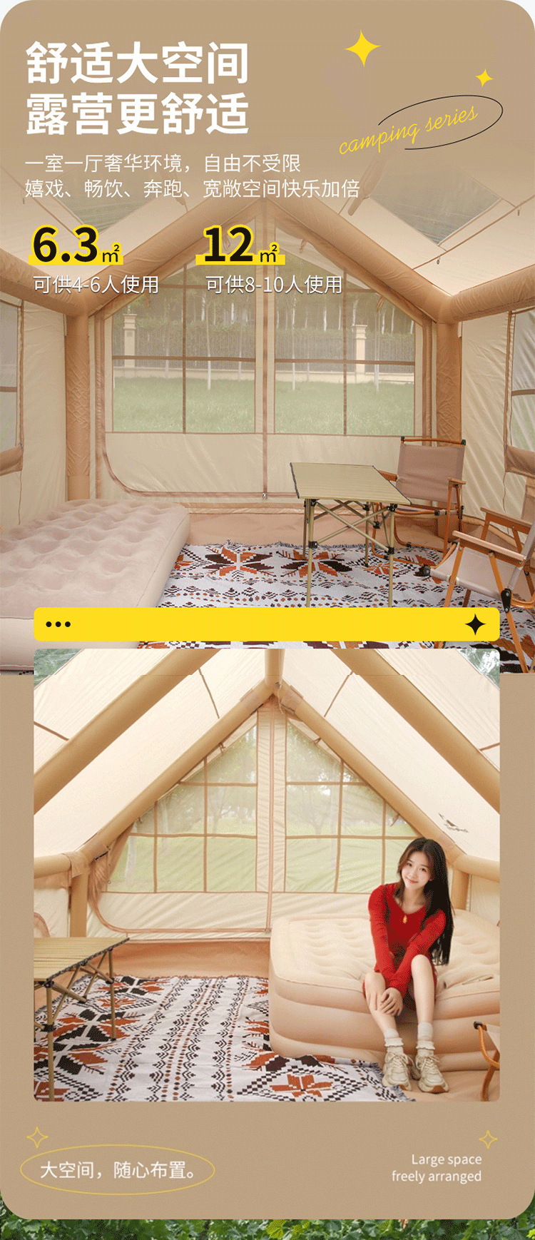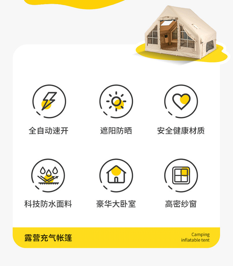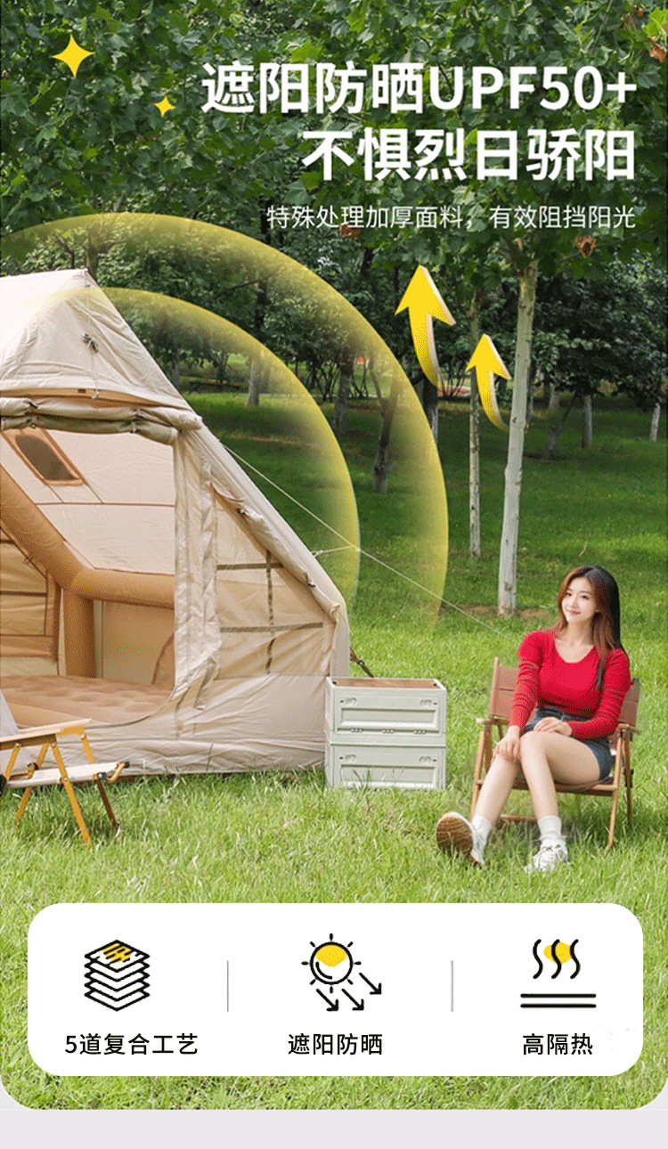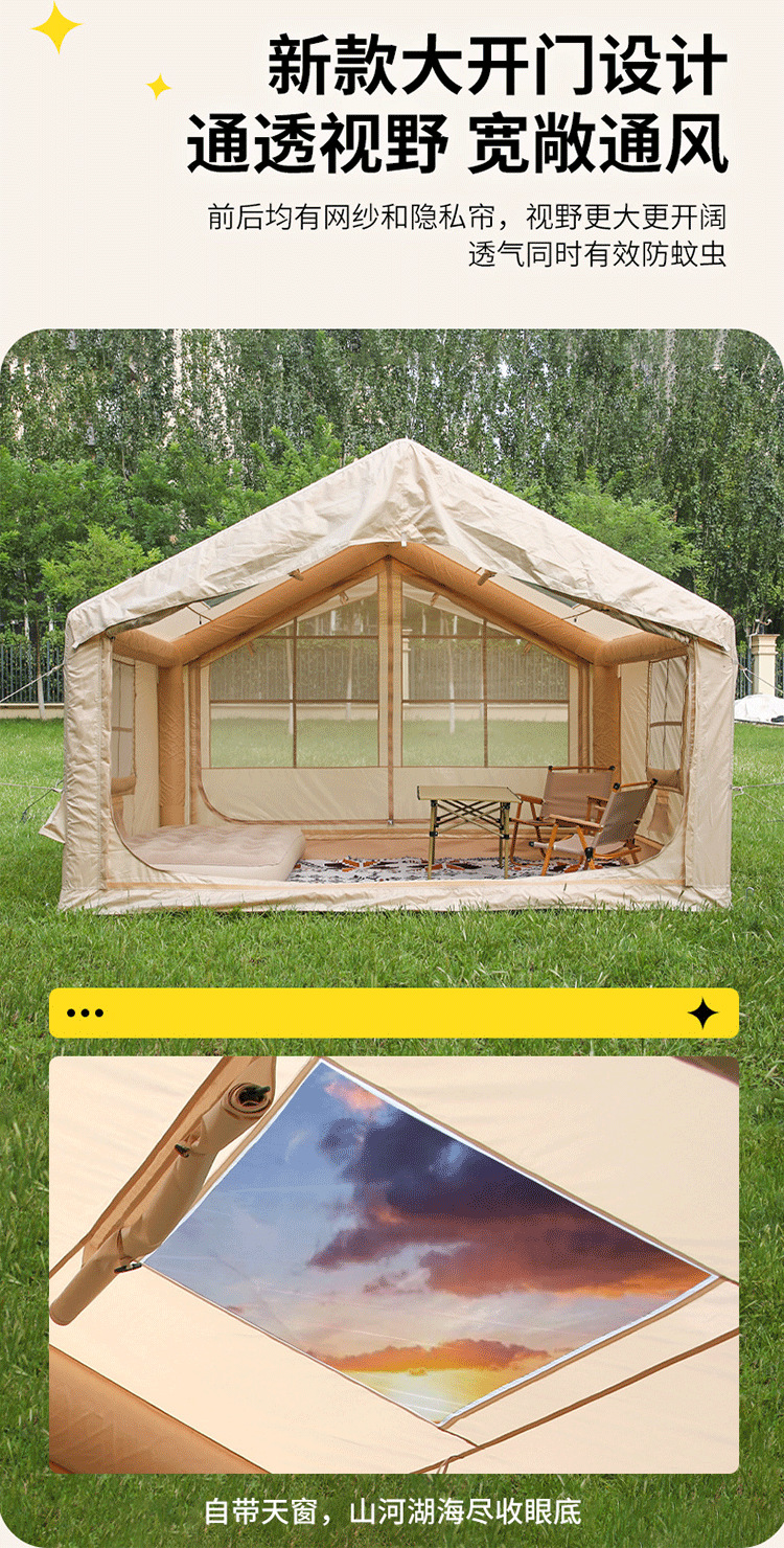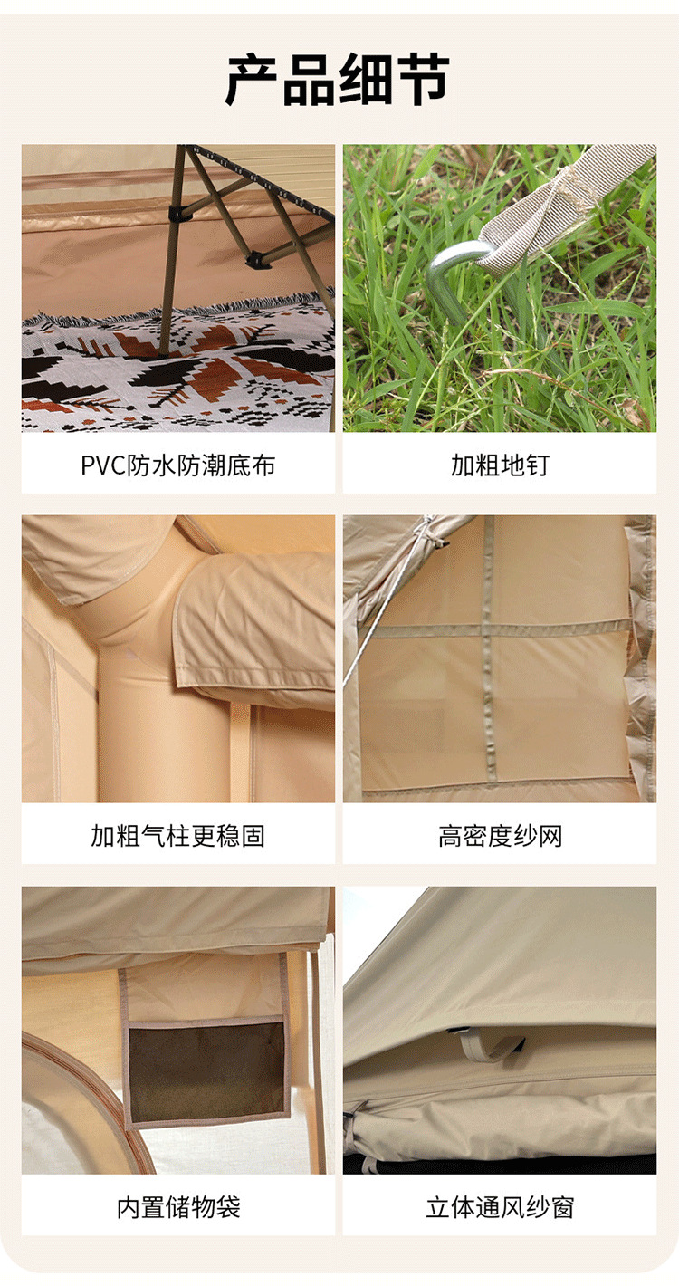 야외 풍선 캠핑 텐트, 두꺼운 공기 기둥, 방수 및 자외선 차단 텐트, 다양한 휴대용 설치가 필요 없는 여행용 텐트