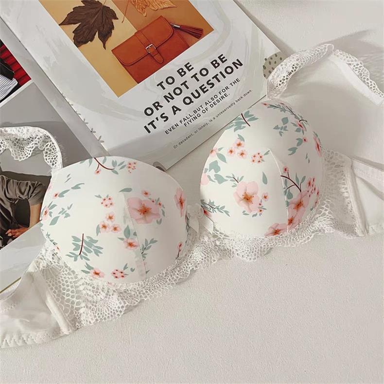 가슴이 큰 여성을 위한 일본식 이음매 없는 얇고 달콤한 소녀 푸시업 브라, 뚱뚱한 여성을 위한 섹시한 플러스 사이즈 꽃무늬 속옷 세트