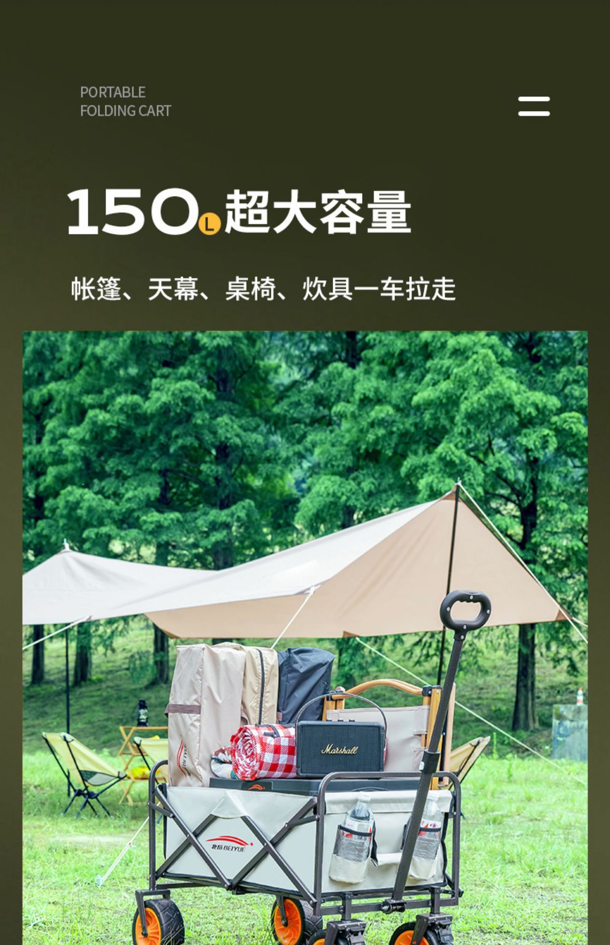 캠핑카 대형 야외 피크닉카 캠프 트레일러 트롤리 트롤리 카트 테이블 보드 스톨 캠핑카