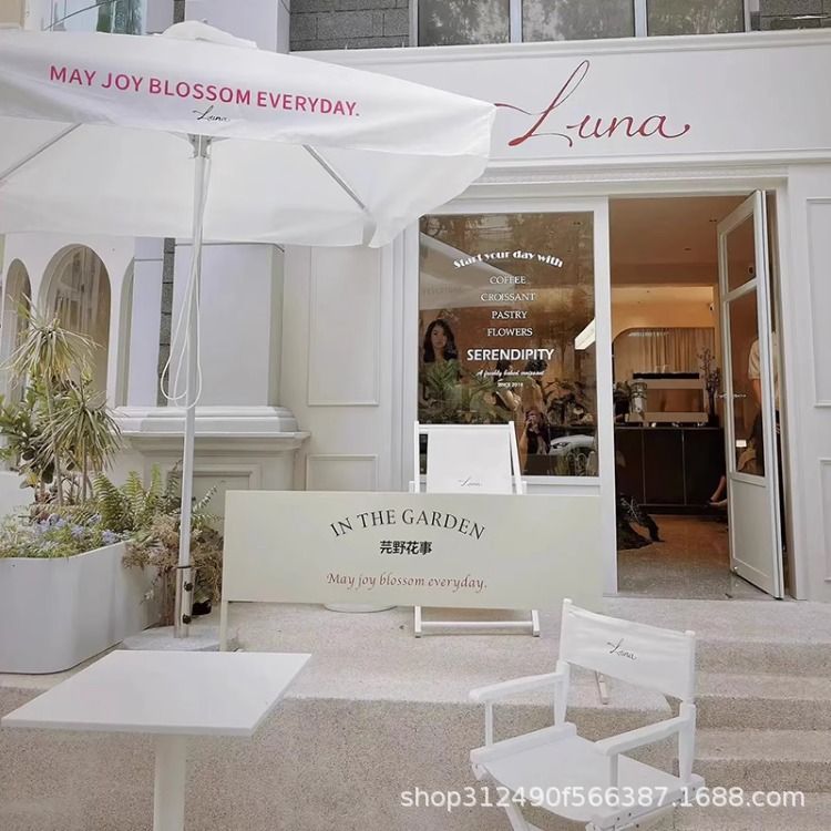 야외 파라솔, 안뜰 정원, 야외 해변 파라솔, 밀크티 카페, 사각 야외 테이블 및 의자, 중간 기둥 우산