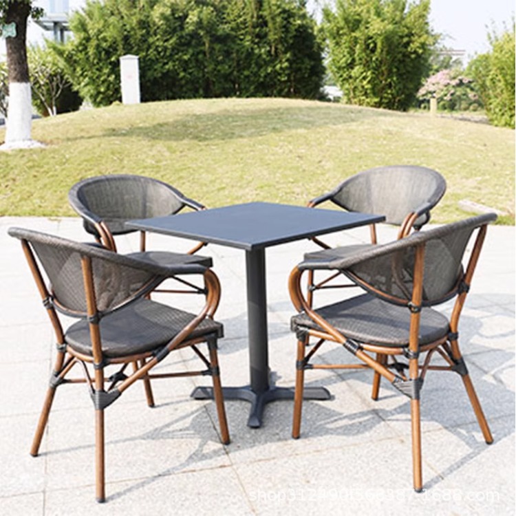 • 의자 4개 + 80cm 플라스틱 나무 사각 테이블 + 2m 사각 우산