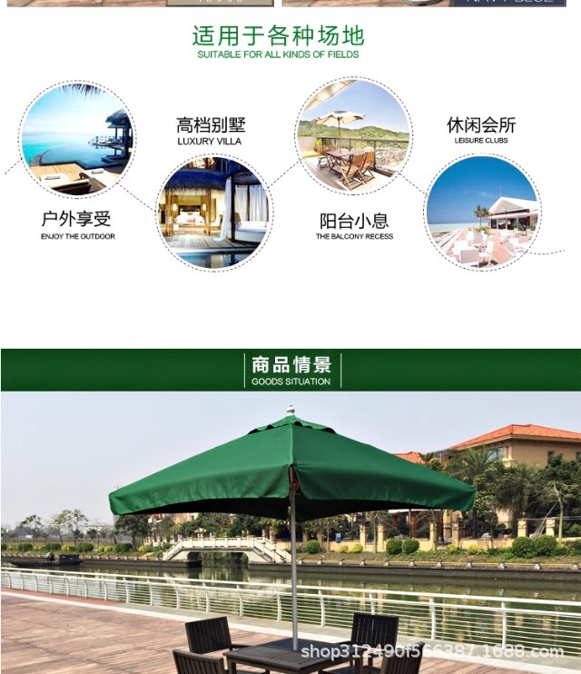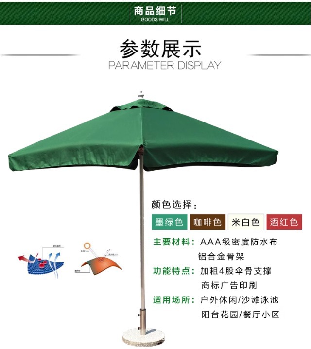 • D 짙은 녹색 중앙 기둥 우산 [50KG 대리석 베이스 포함]