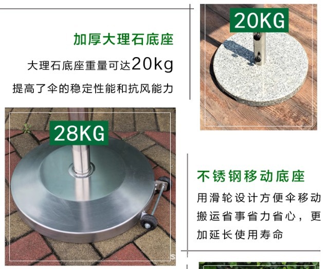• 짙은 녹색 중앙 기둥 우산 [30KG 스테인레스 스틸 베이스 포함]