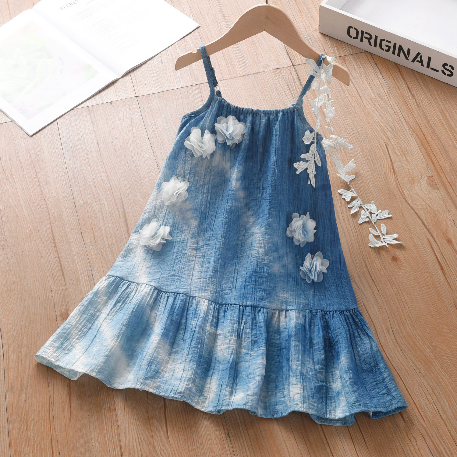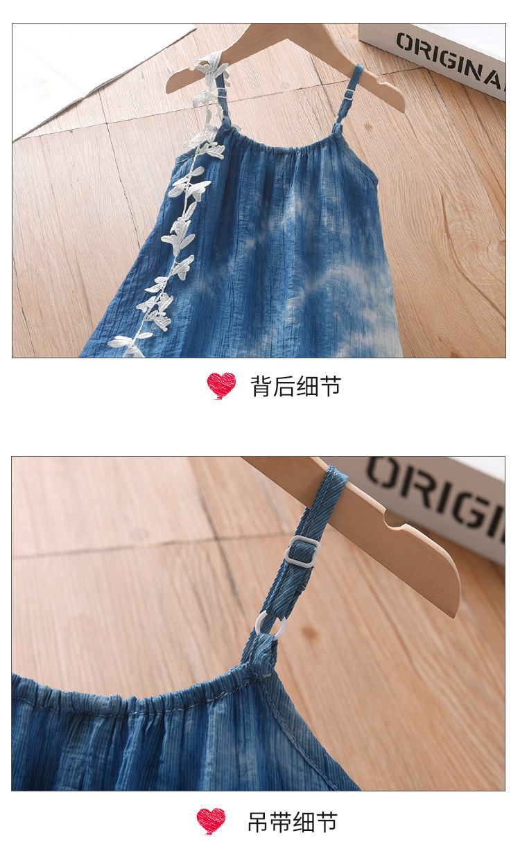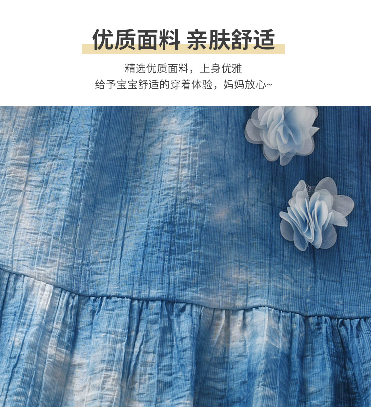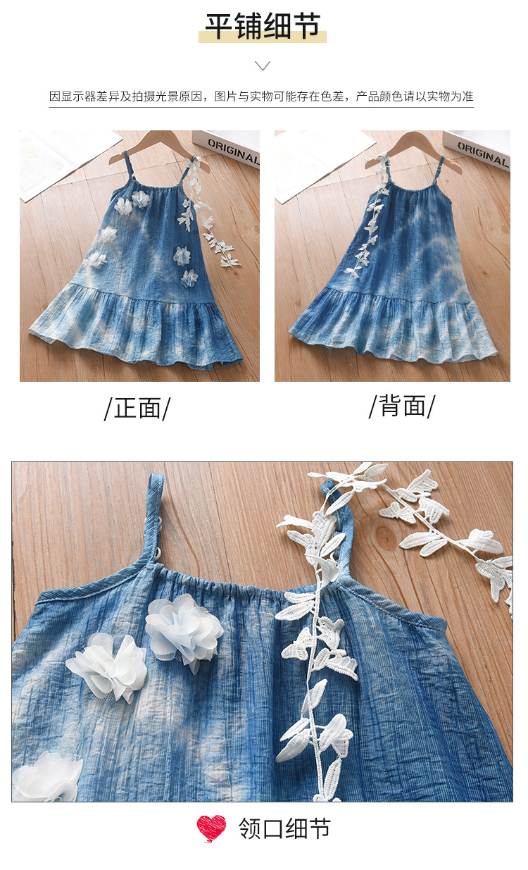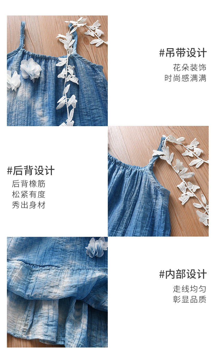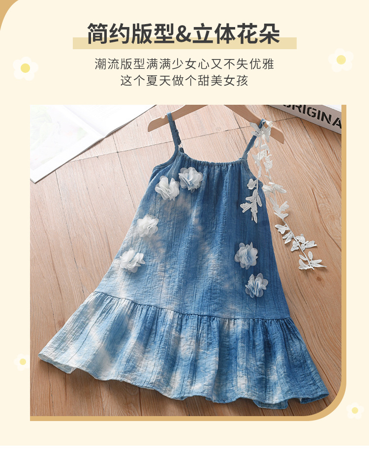 여자를위한 운남 다리 수제 타이 염색 프랑스 입체 꽃 드레스 부모-자식 착용 Xia Xin 휴가 스타일 서스펜더 스커트스토어 가기