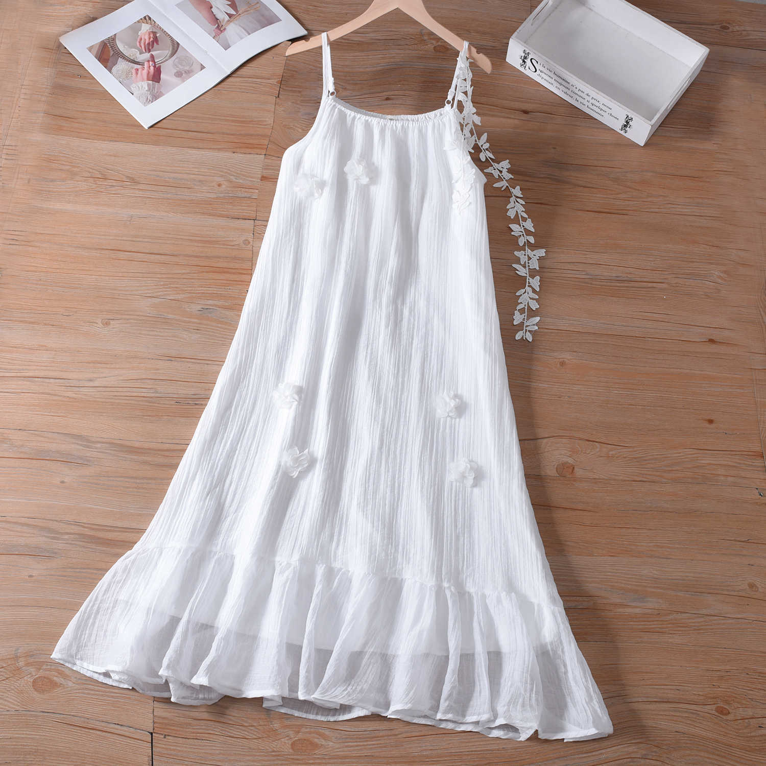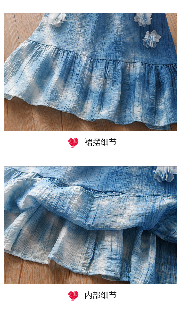 여자를위한 운남 다리 수제 타이 염색 프랑스 입체 꽃 드레스 부모-자식 착용 Xia Xin 휴가 스타일 서스펜더 스커트