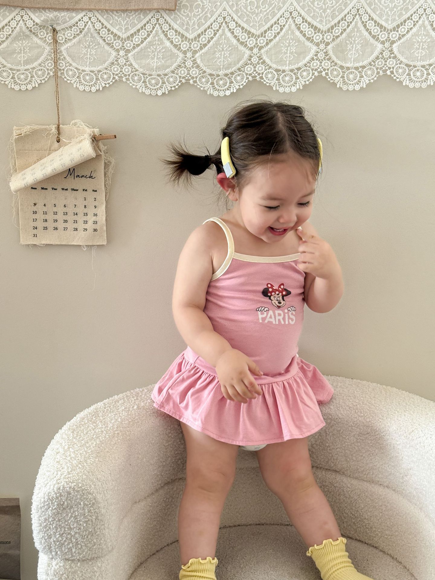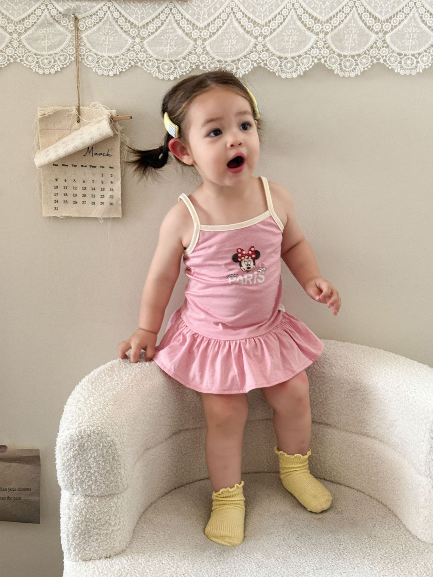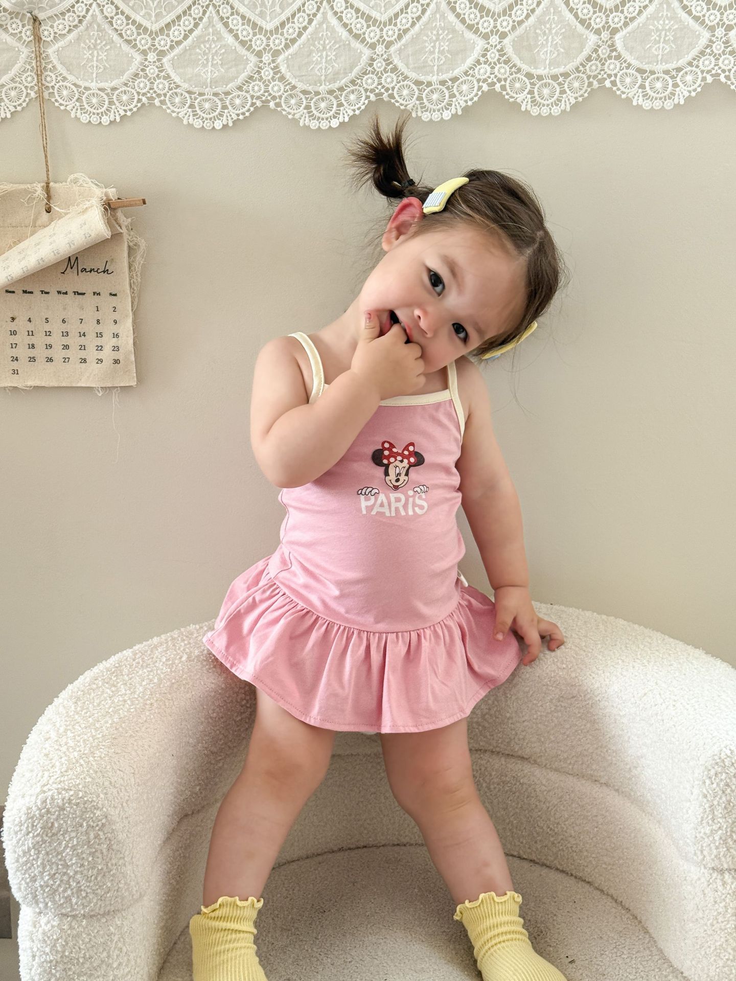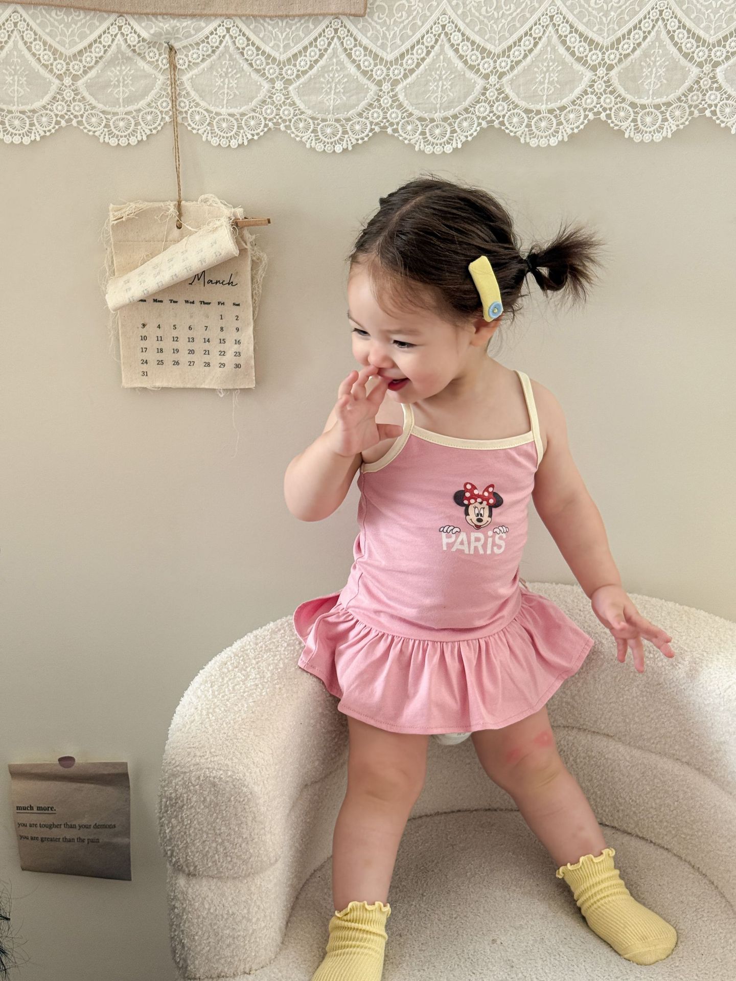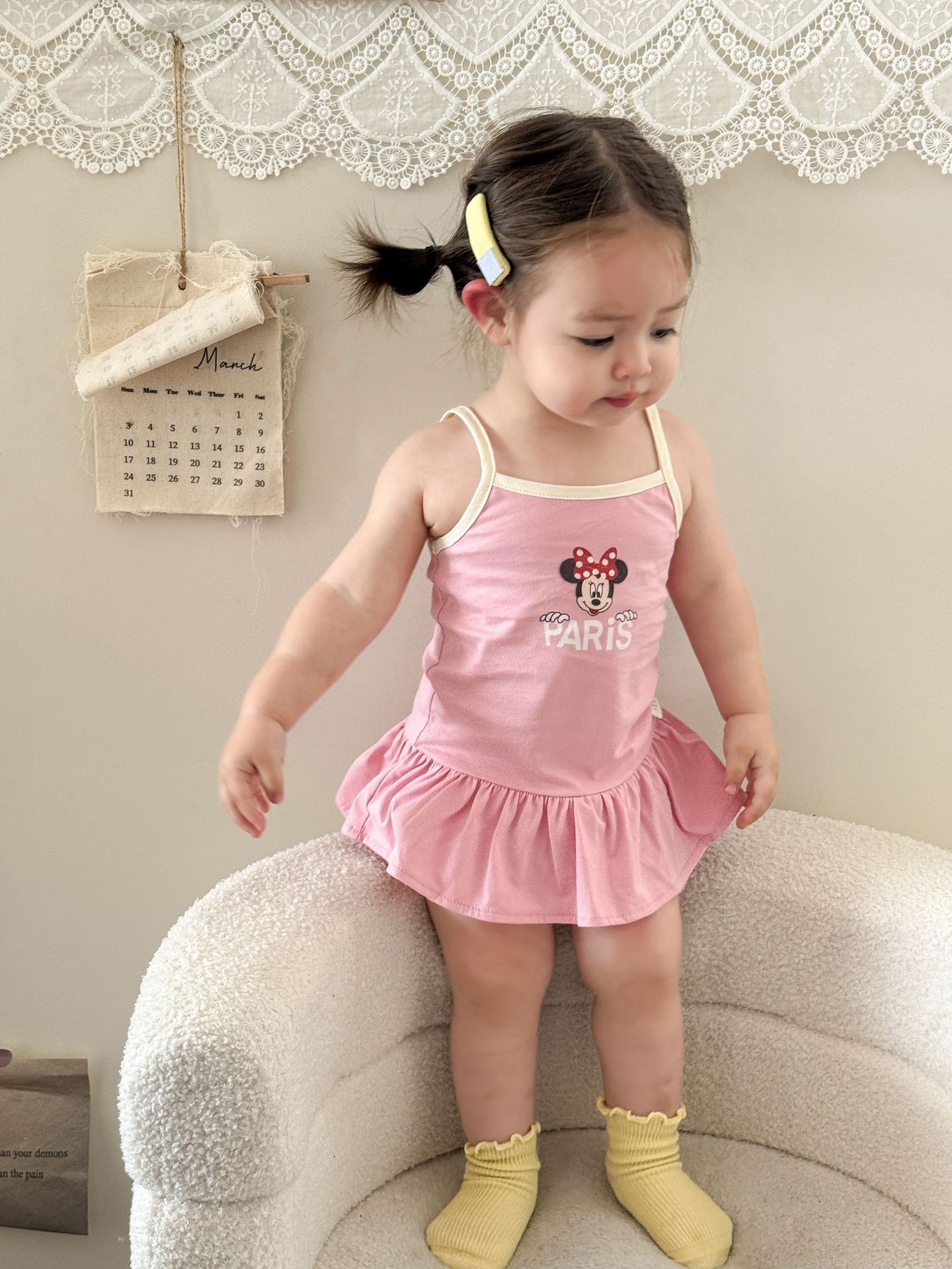 • 핑크색 서스펜더 스커트
