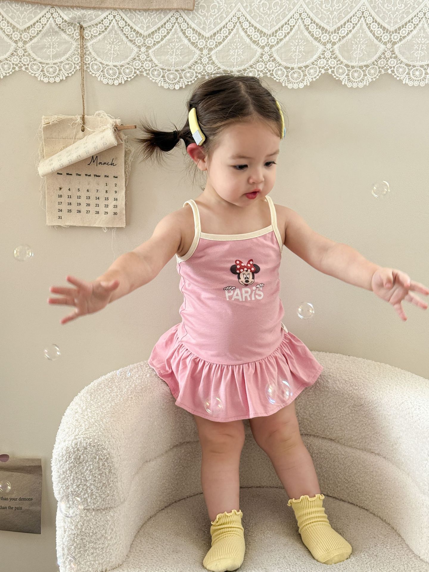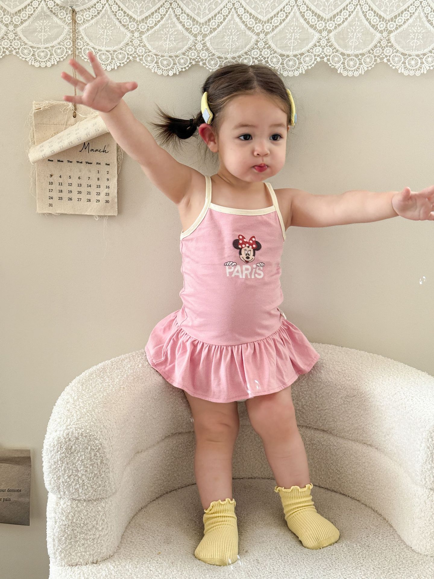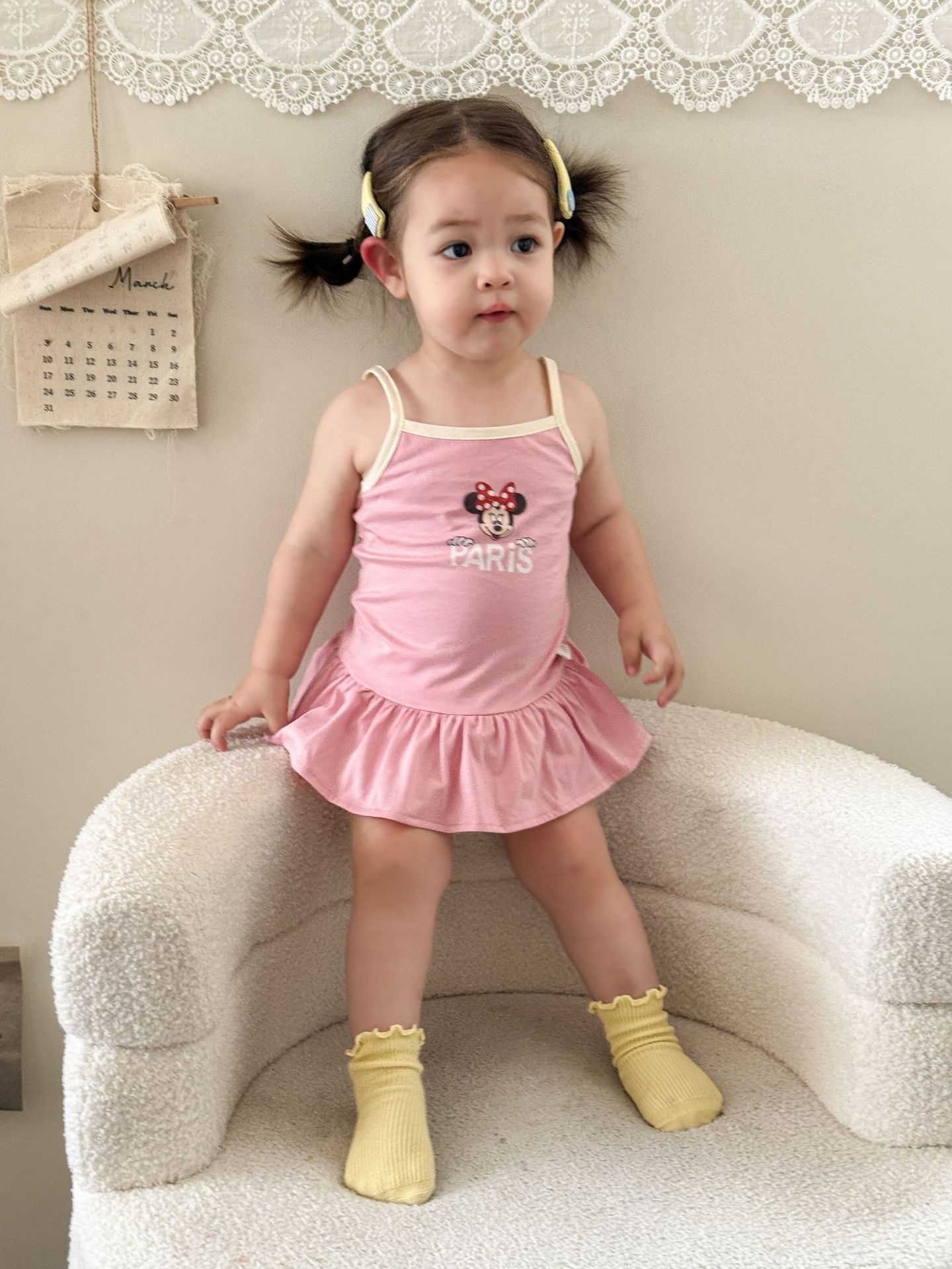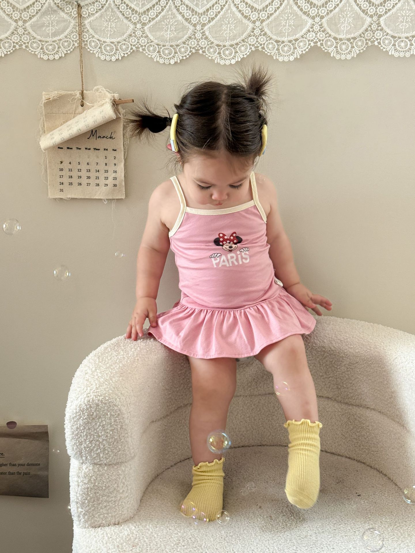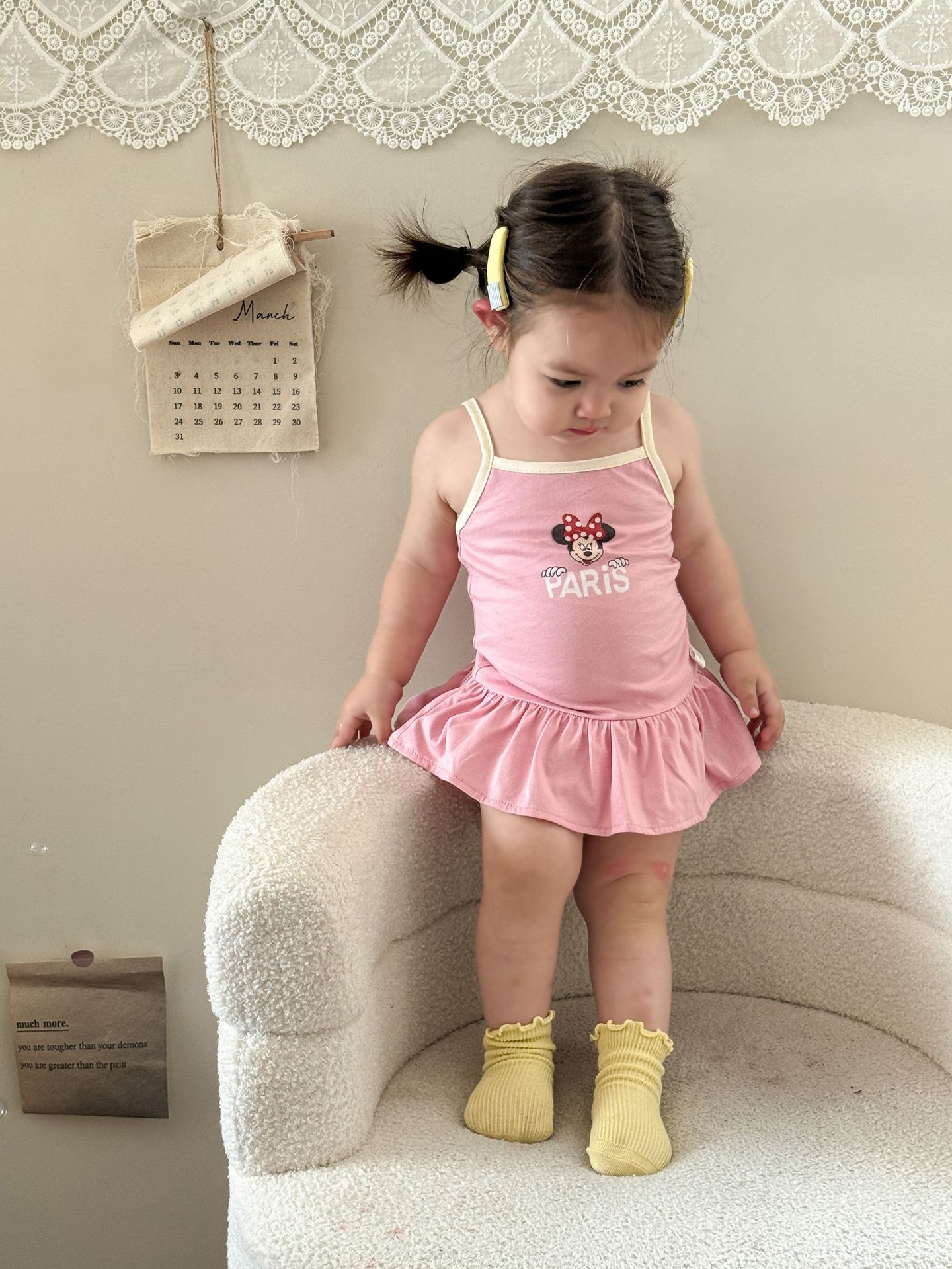 • 핑크색 서스펜더 스커트