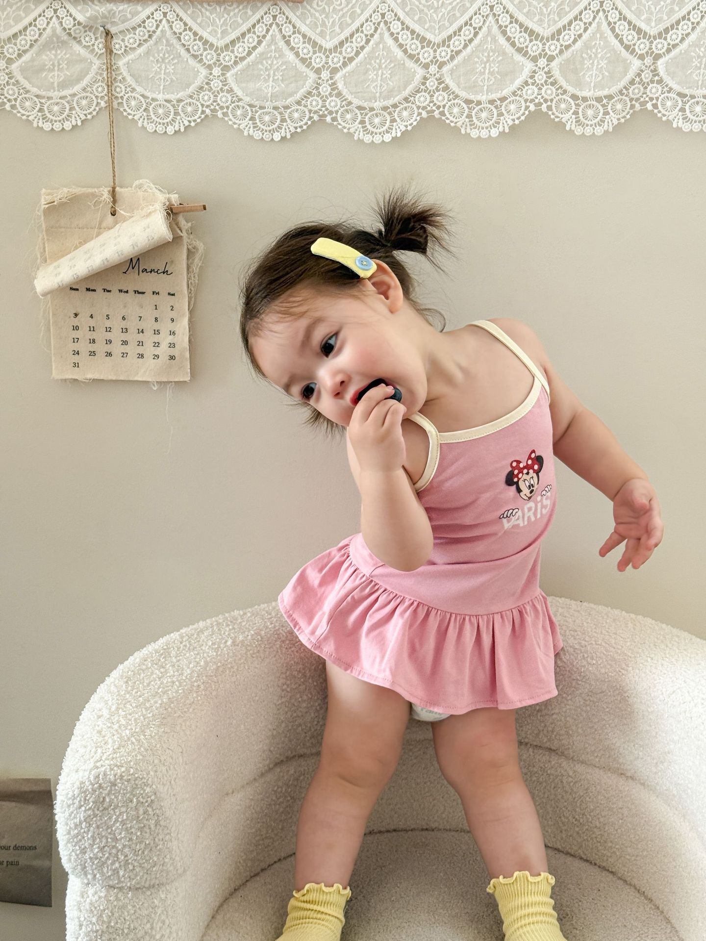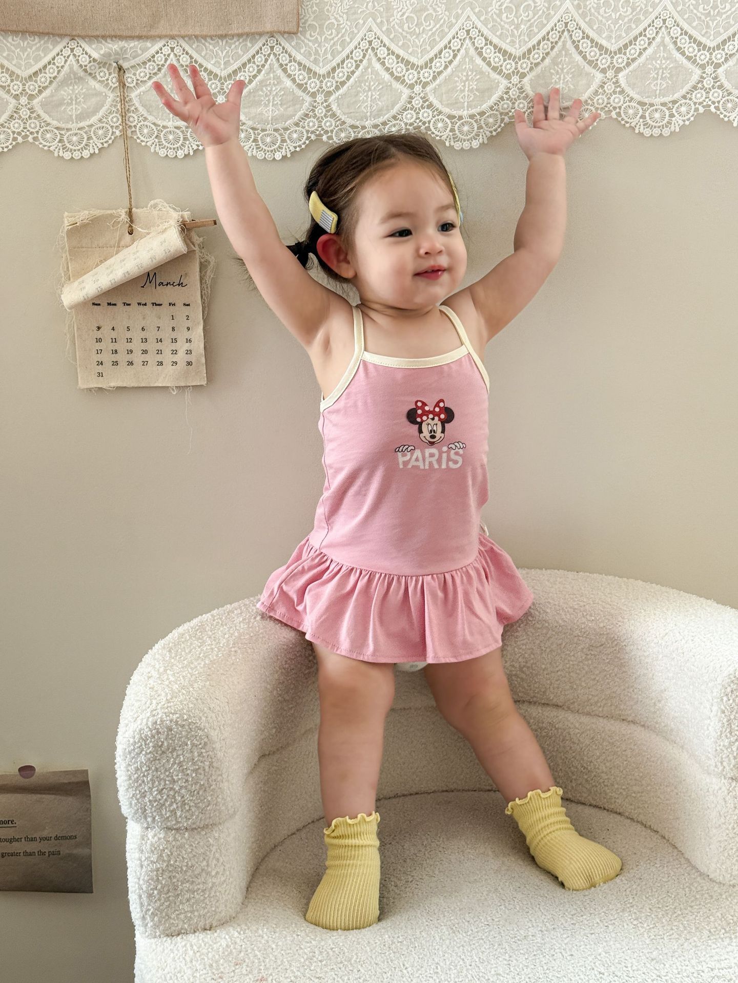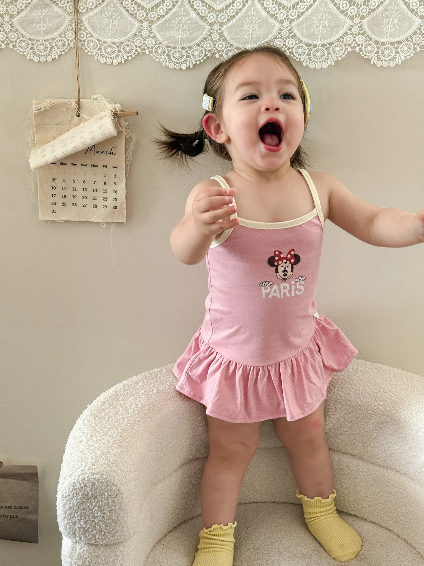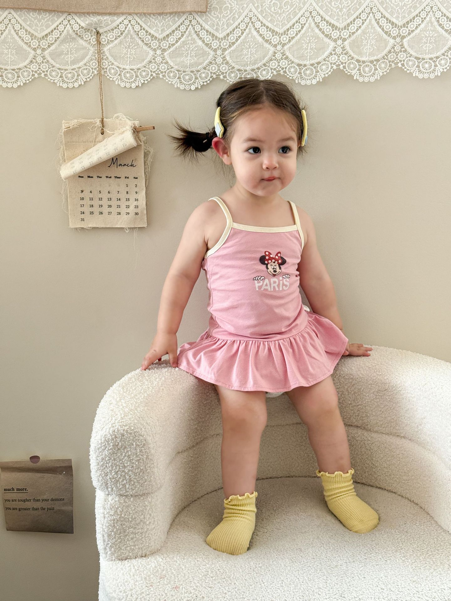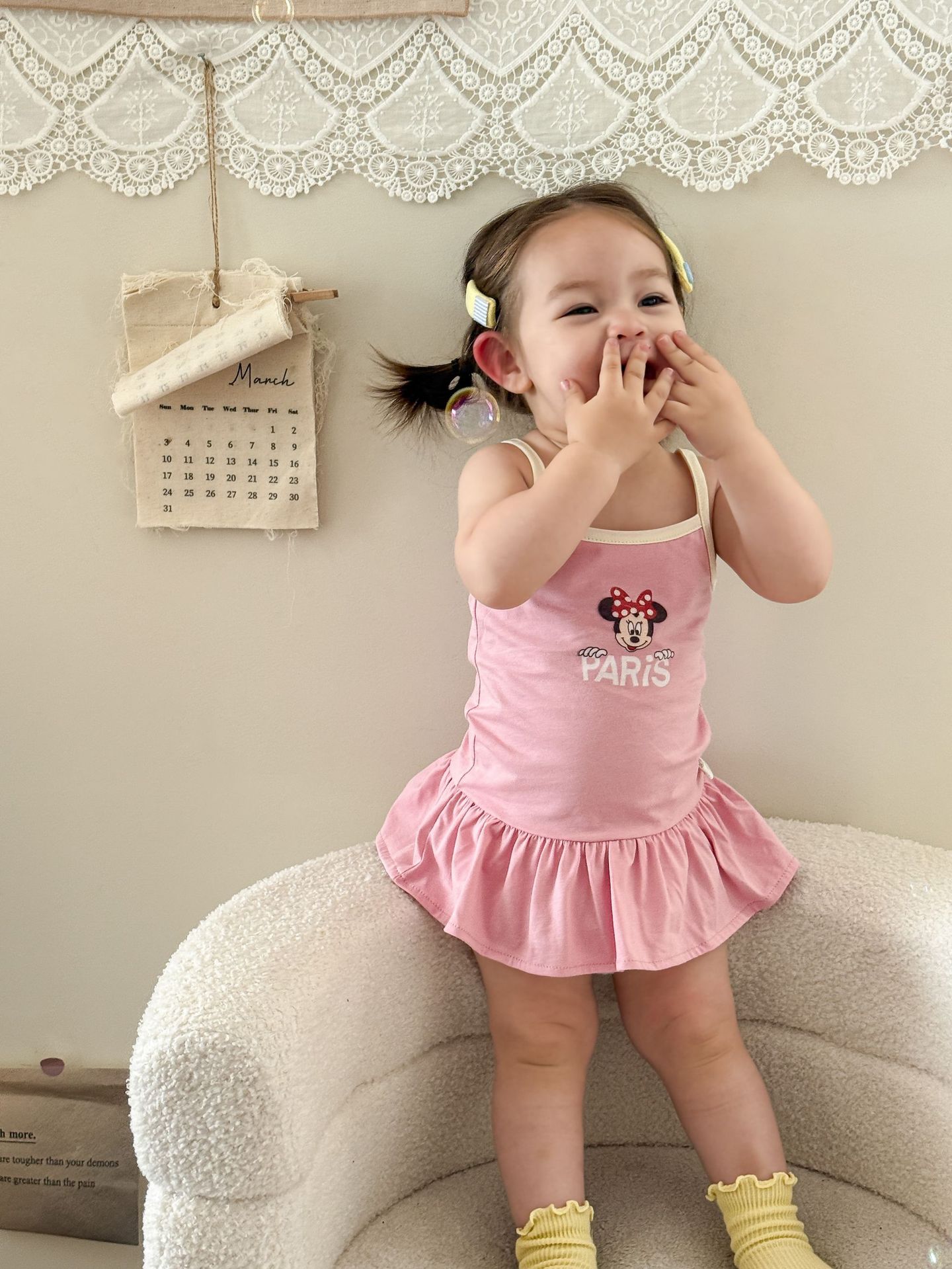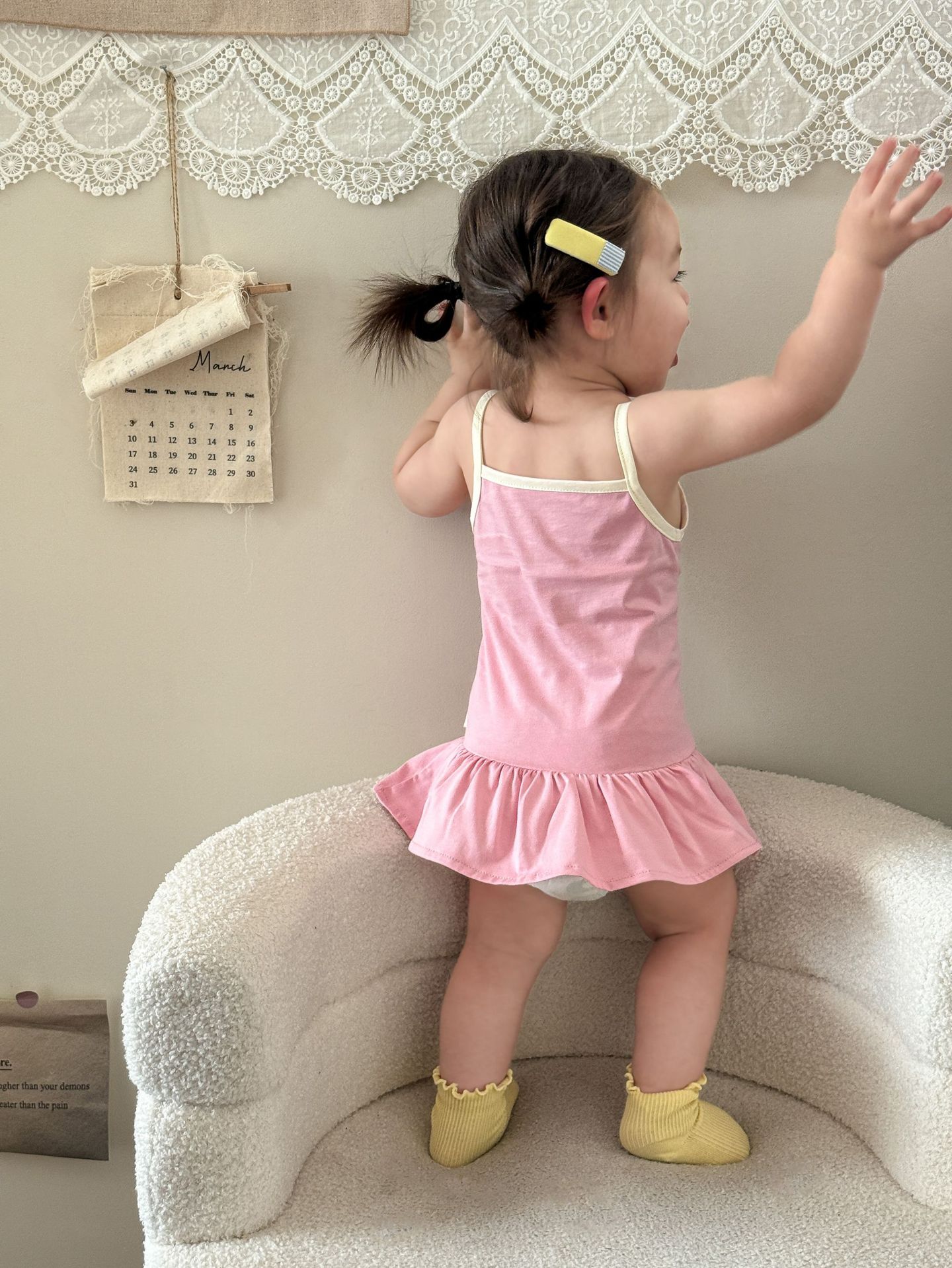 • 핑크색 서스펜더 스커트