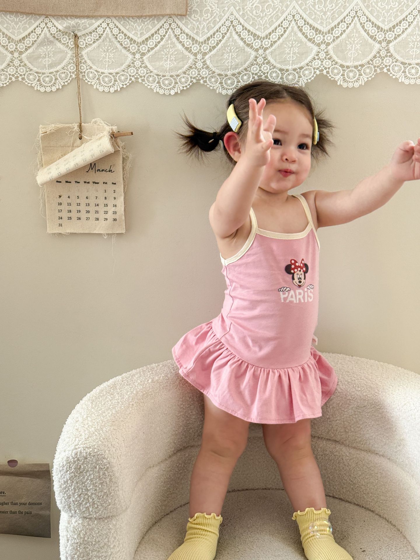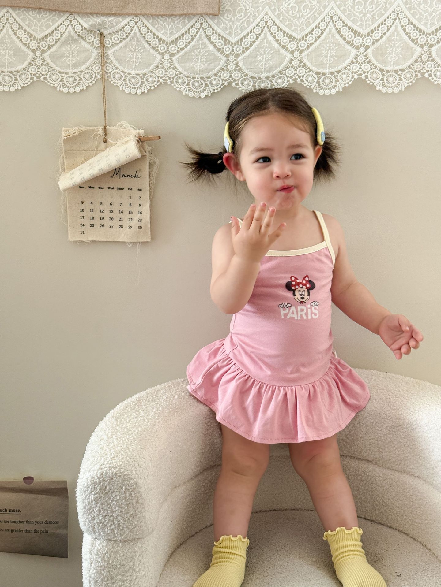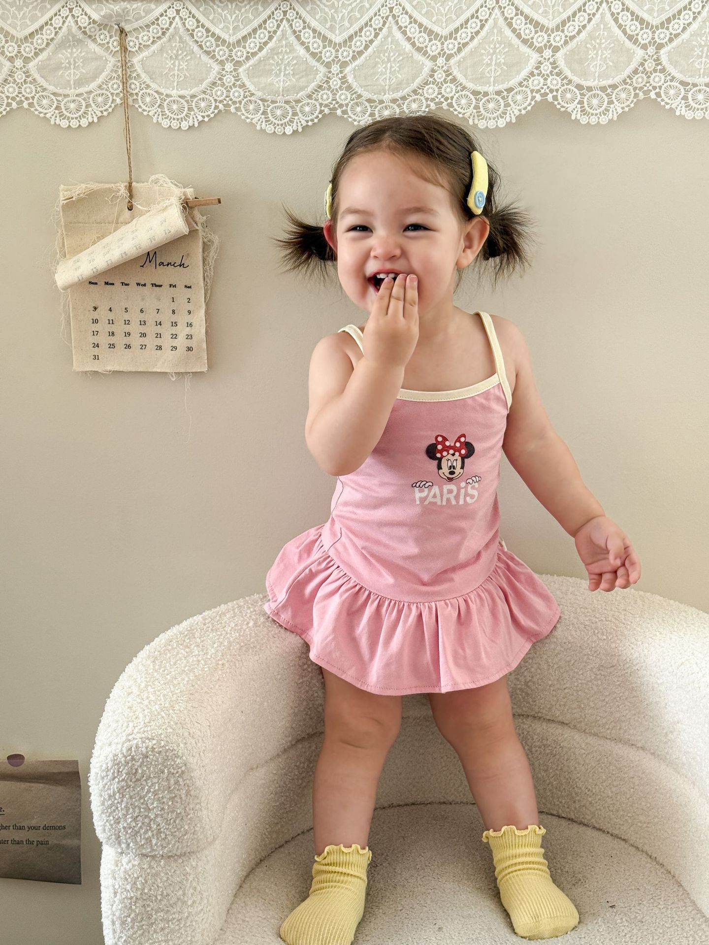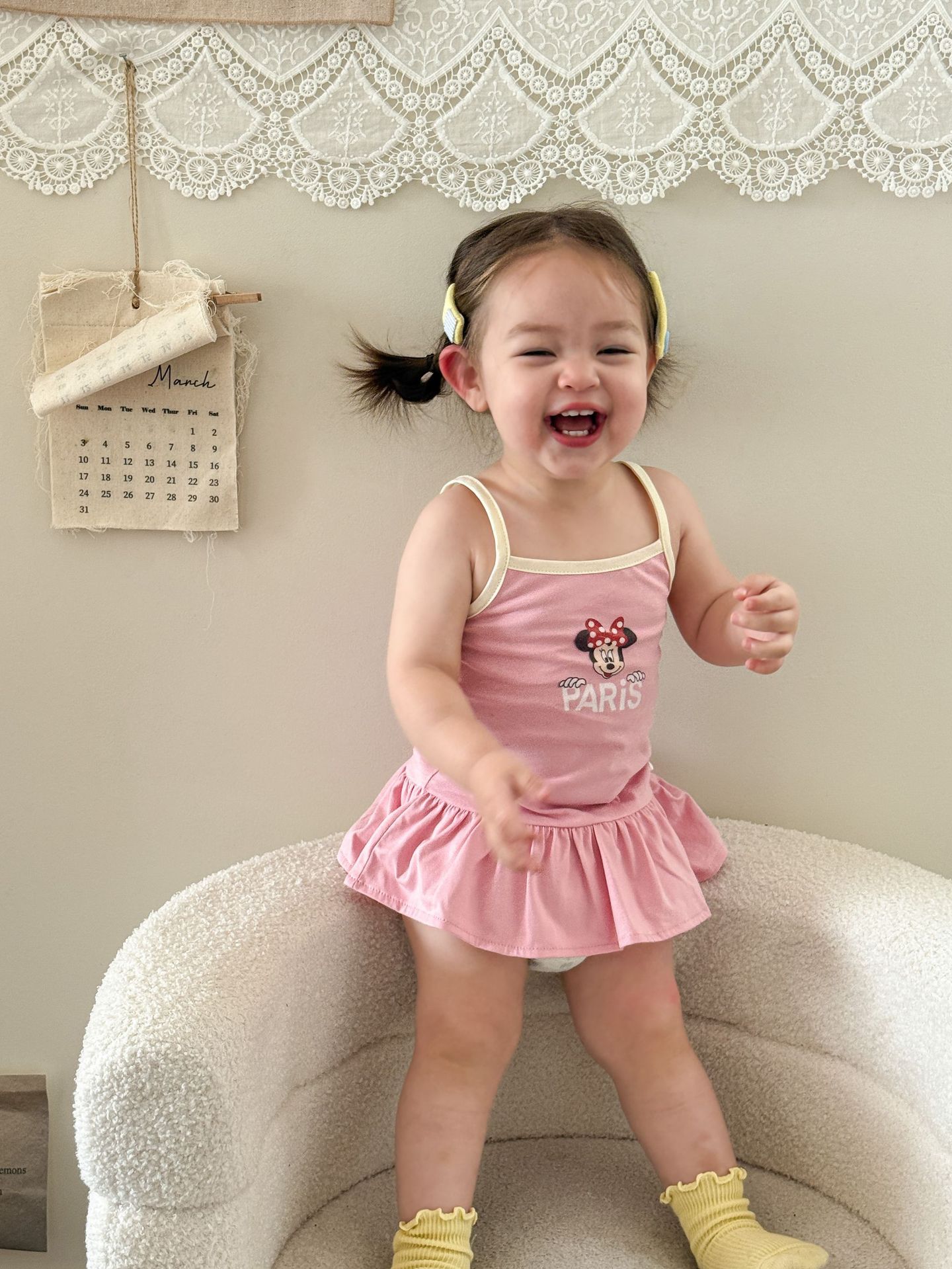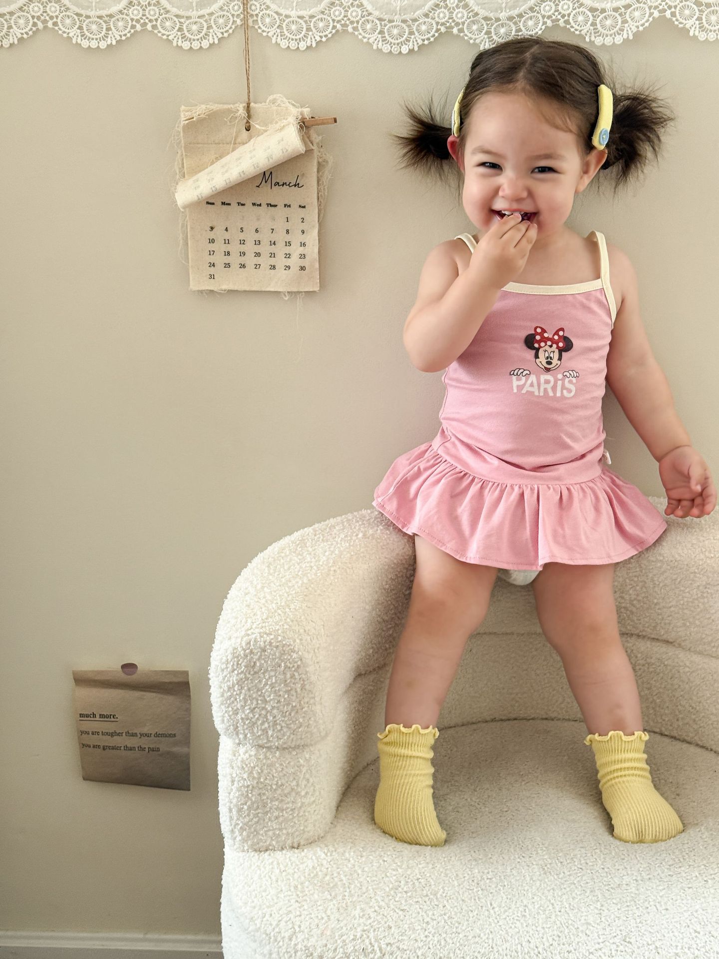 • 핑크색 서스펜더 스커트