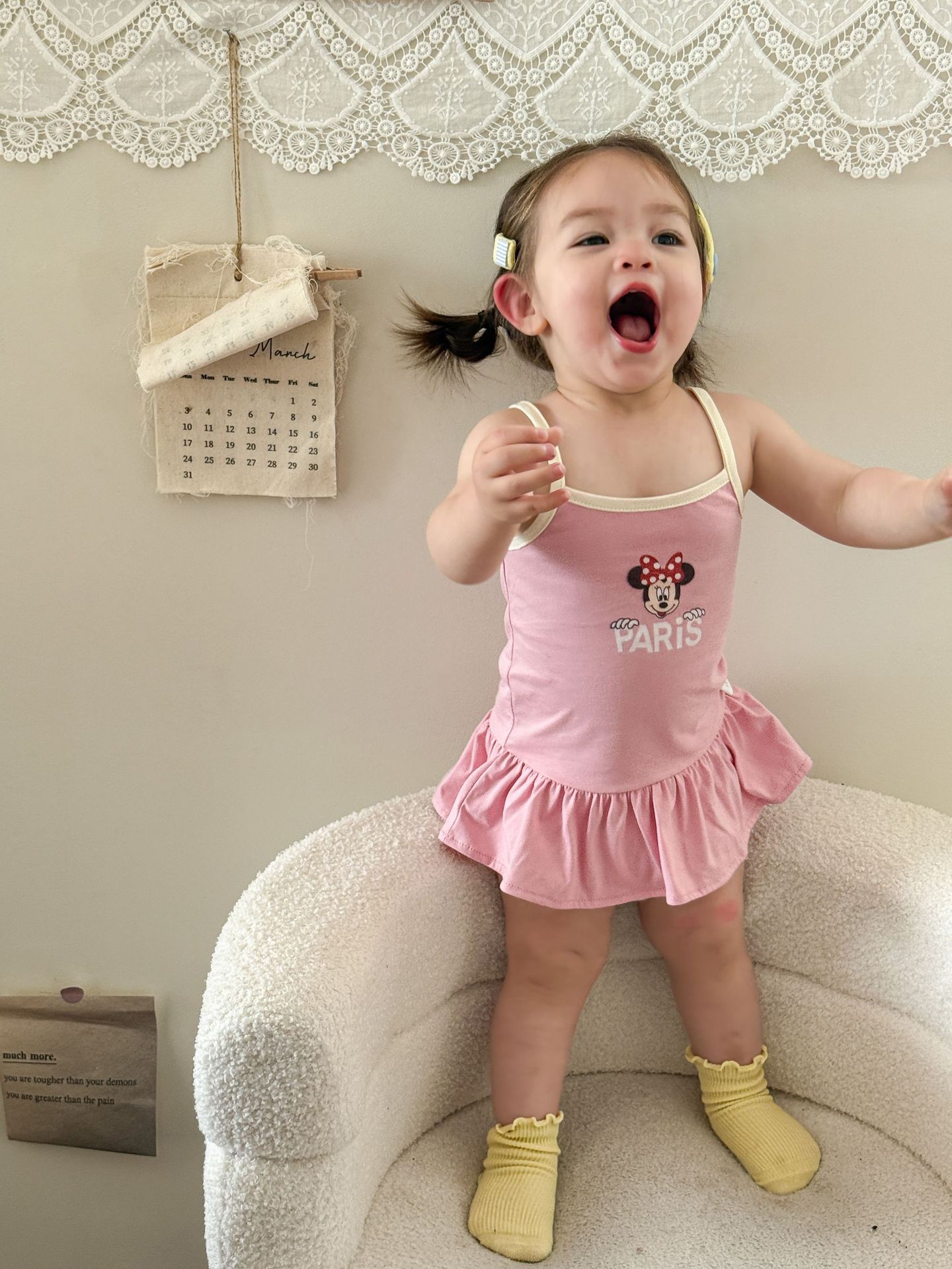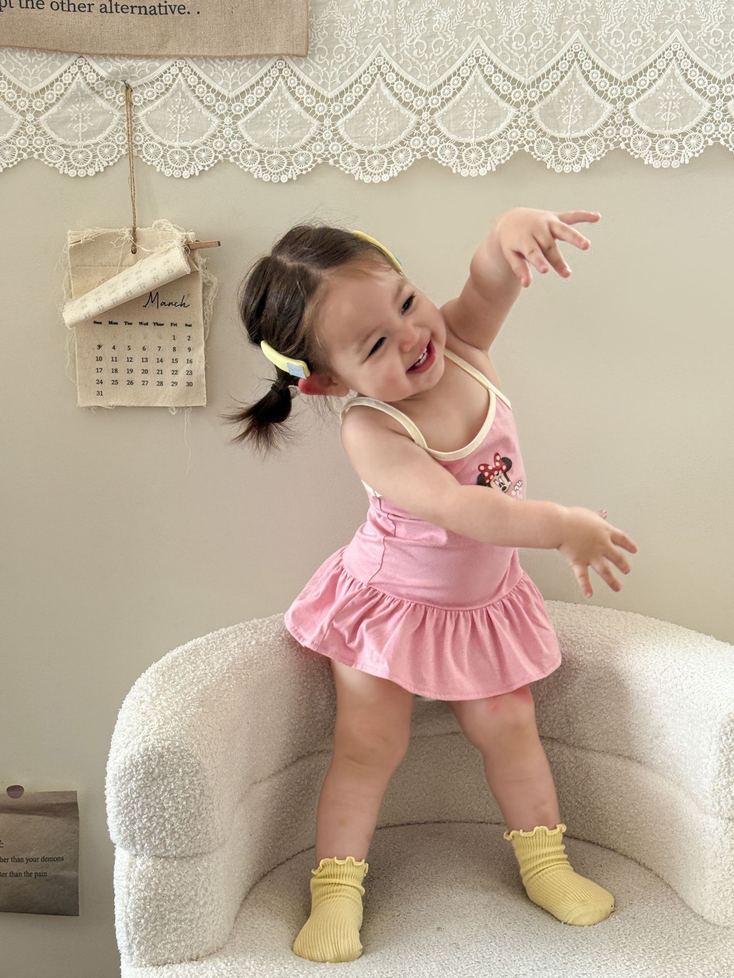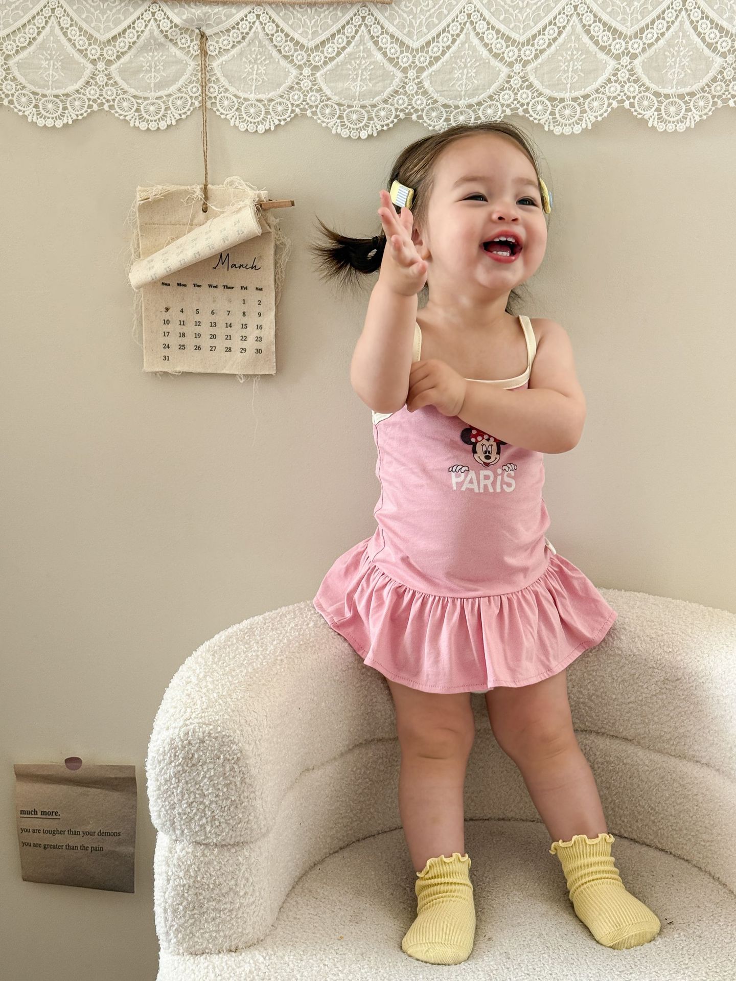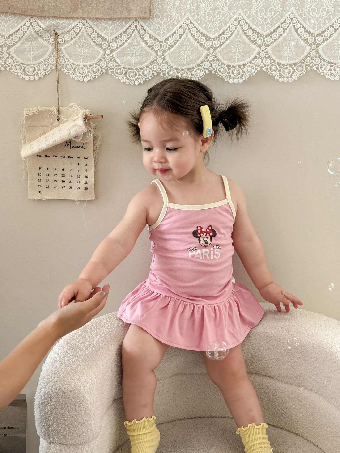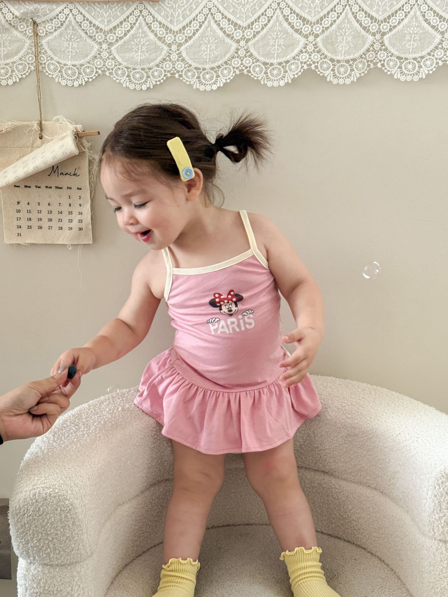• 핑크색 서스펜더 스커트