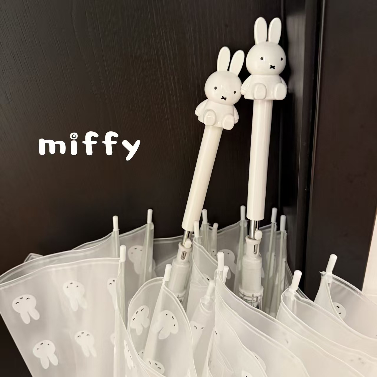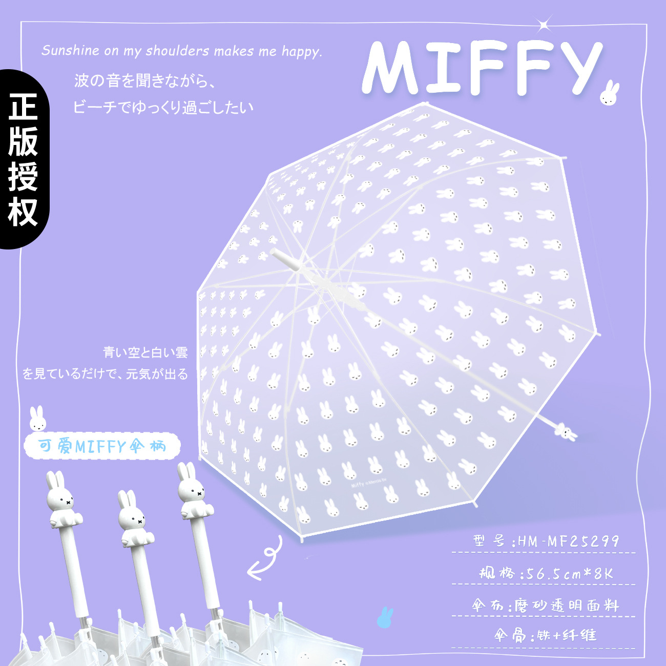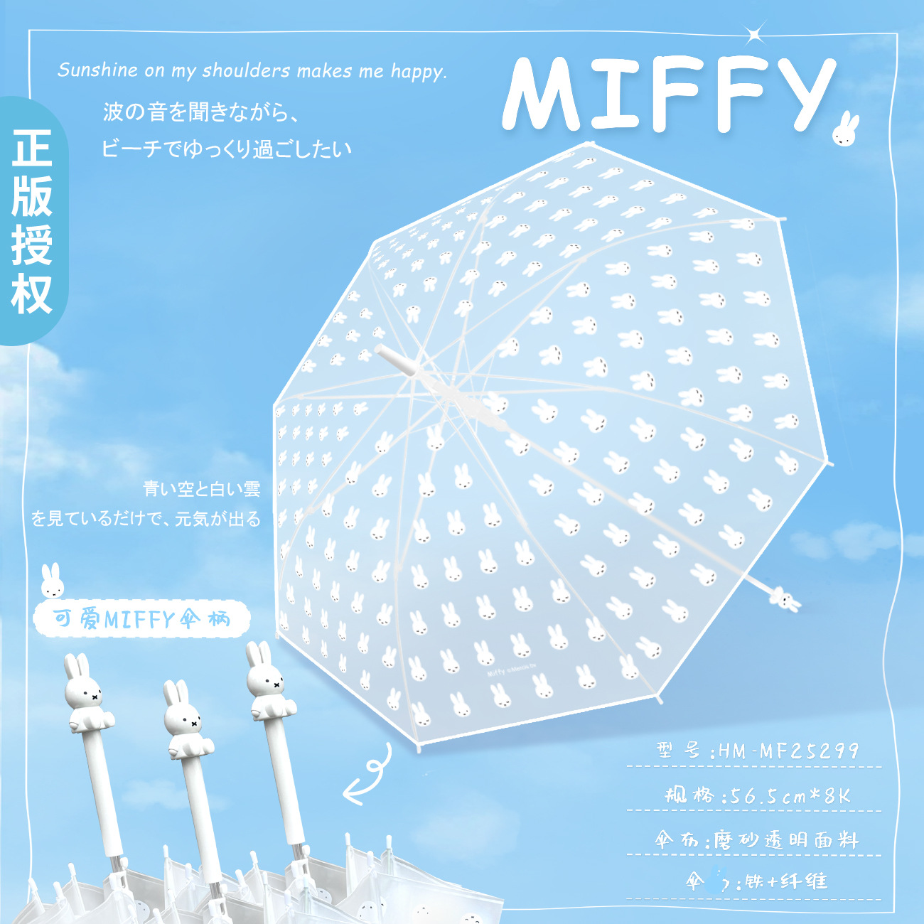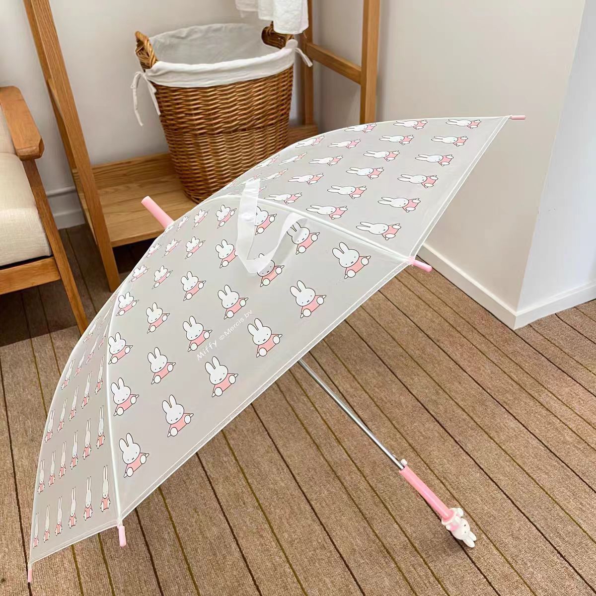 Miffy 투명 우산 어린이 환경 우산 귀여운 만화 스트레이트 롱 핸들 자동 투명 우산