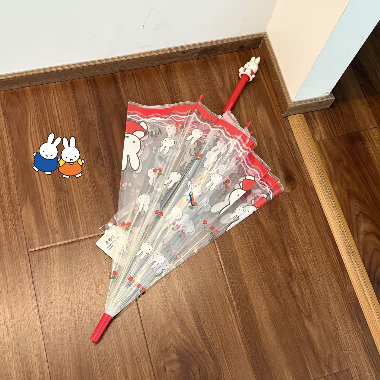 Miffy 투명 우산 어린이 환경 우산 귀여운 만화 스트레이트 롱 핸들 자동 투명 우산스토어 가기