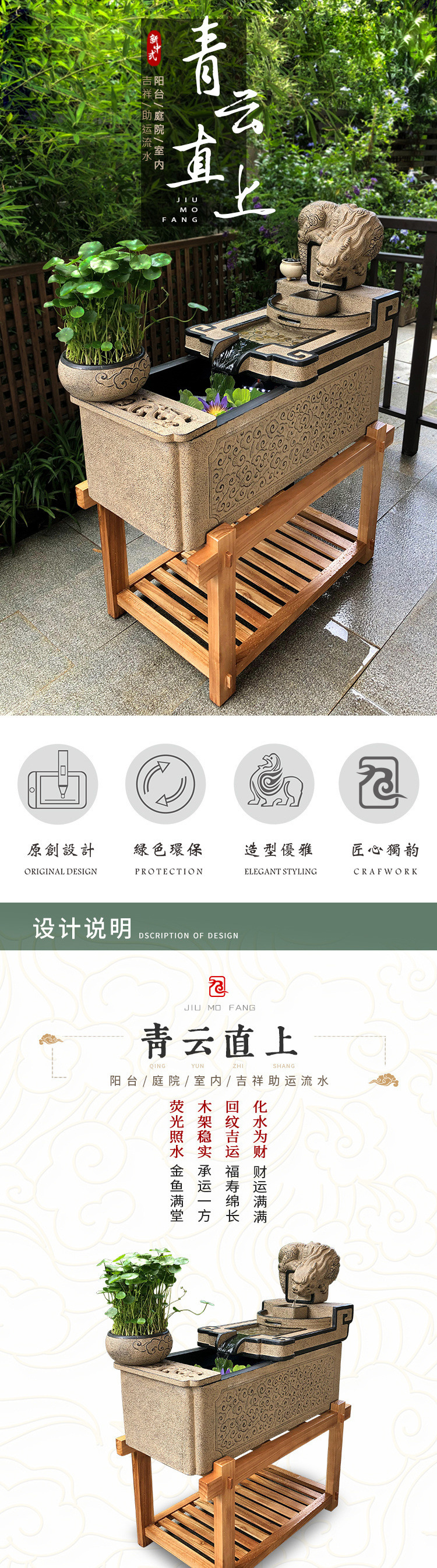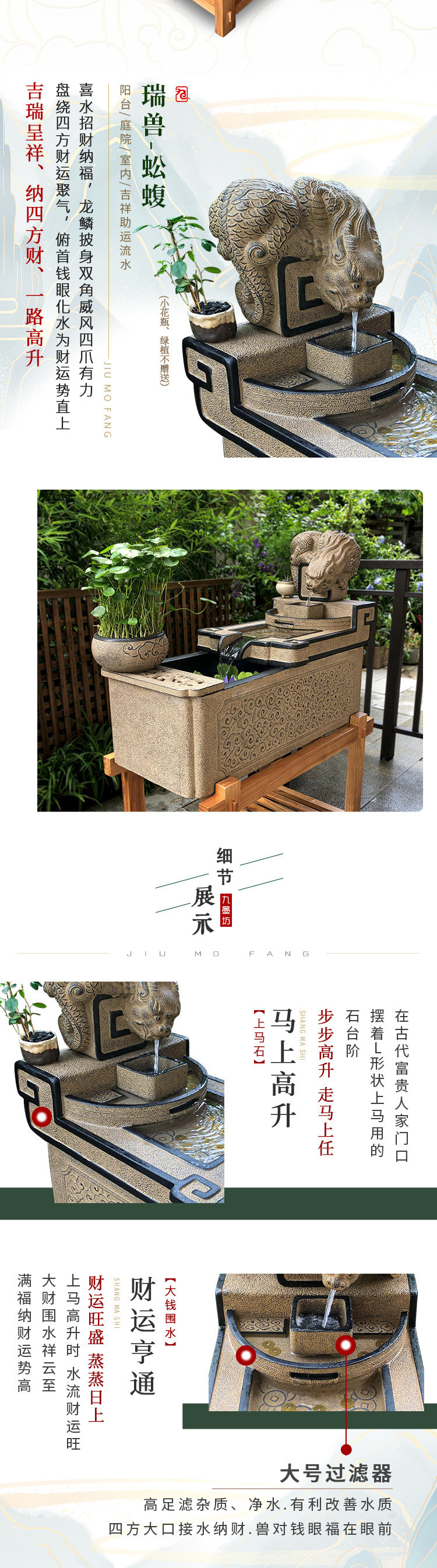 물 장식품, 장식용 수경 시스템, 순환 수경 시스템, 거실, 부를 끌어들이는 골동품 수조 분수, 안뜰 물고기 연못 조경스토어 가기