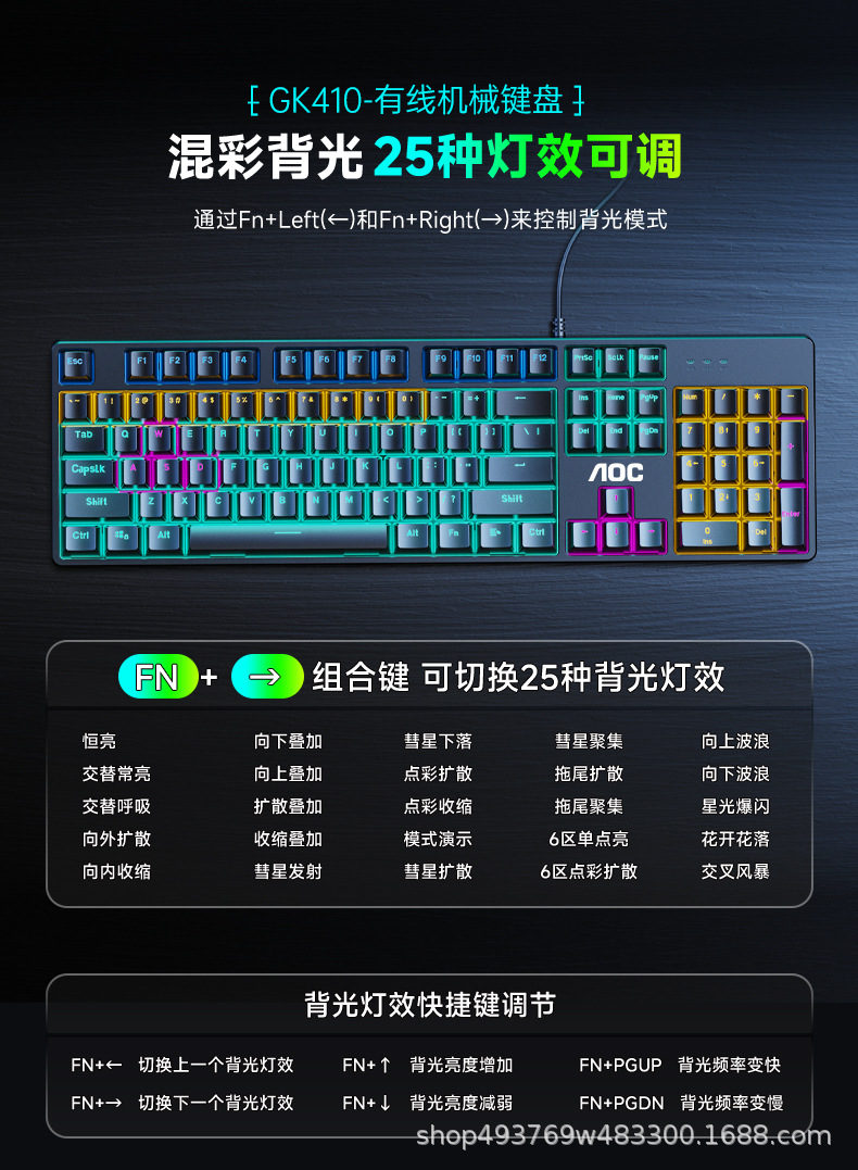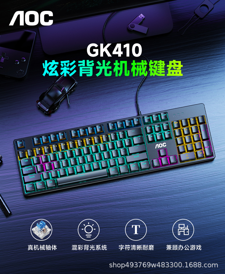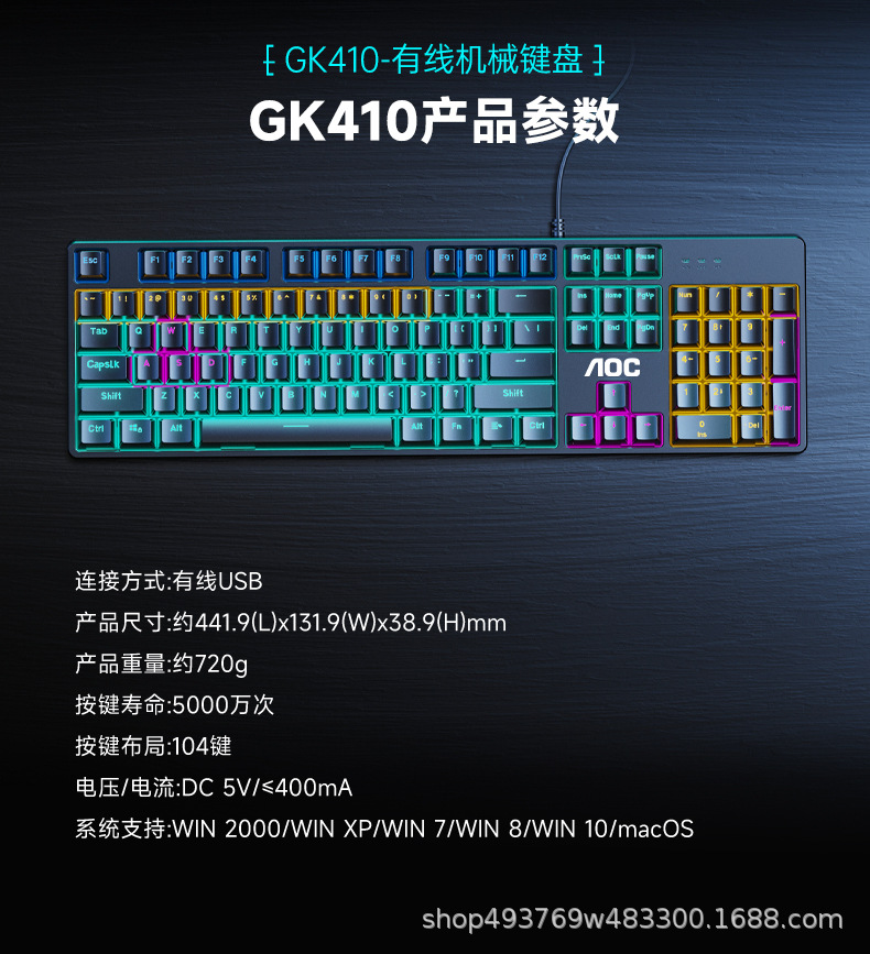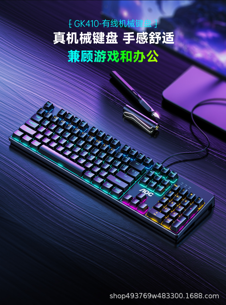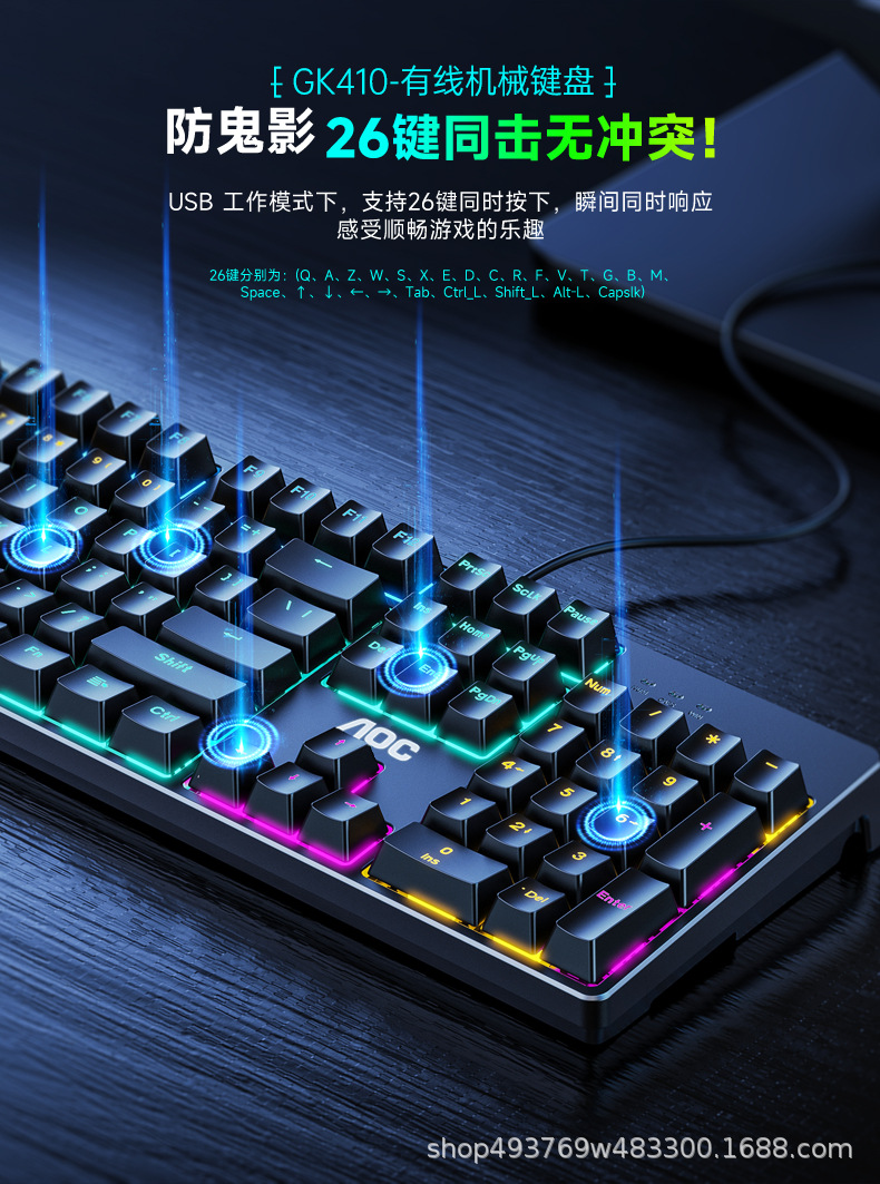 AOC TPV GK410 기계식 키보드 및 마우스 유선 104키 e스포츠 녹색 축 게임 데스크탑 치킨 LOL 노트스토어 가기