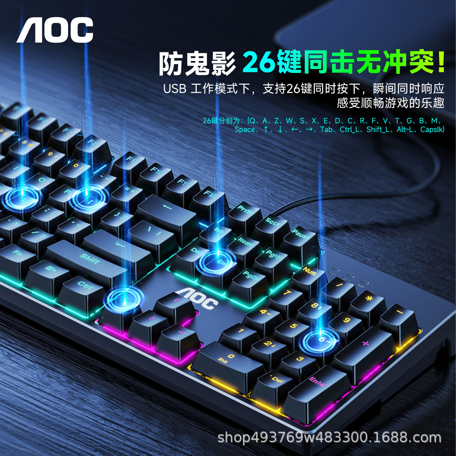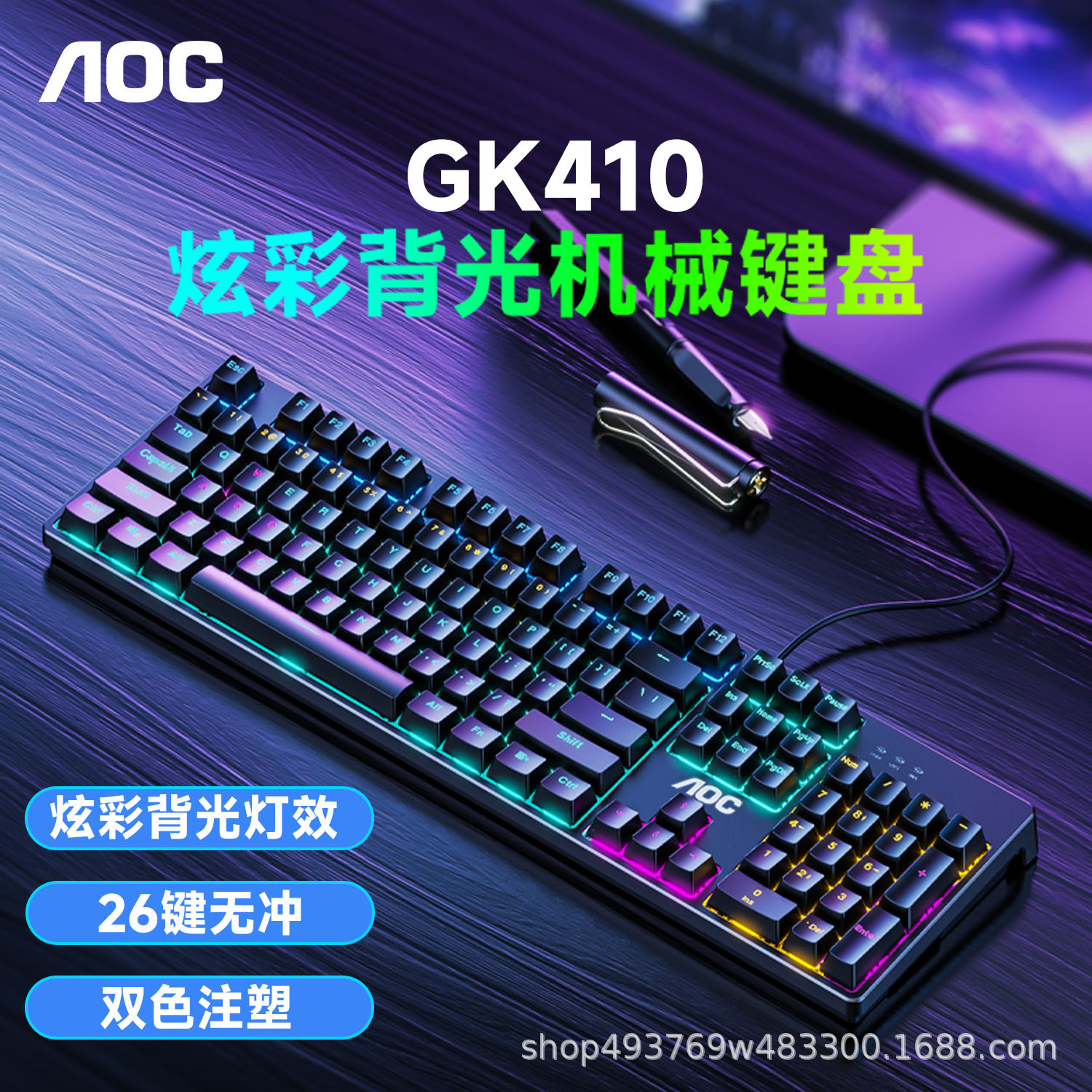 • AOC 기계식 키보드-녹색 축-플라스틱 패널