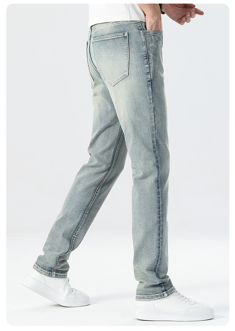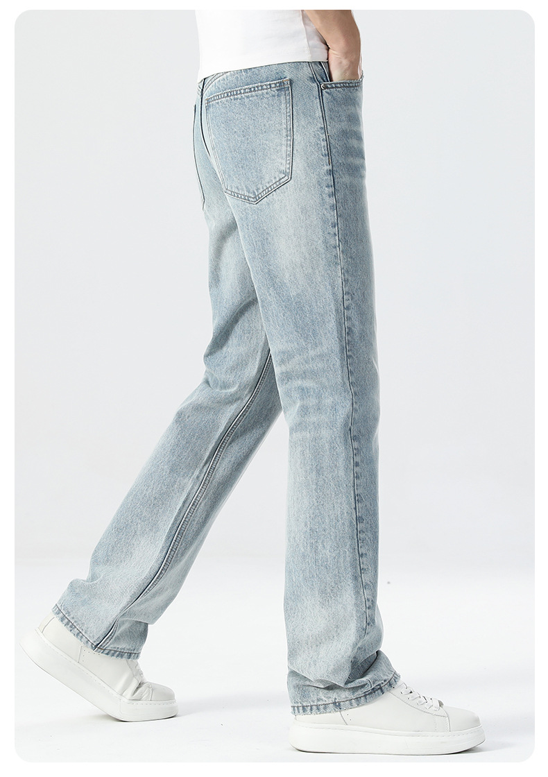 남성용 여름 얇은 루즈핏 스트레이트 진 2025 신상 여름 신축성 슬림핏 캐주얼 롱 팬츠 슬리밍 효과스토어 가기
