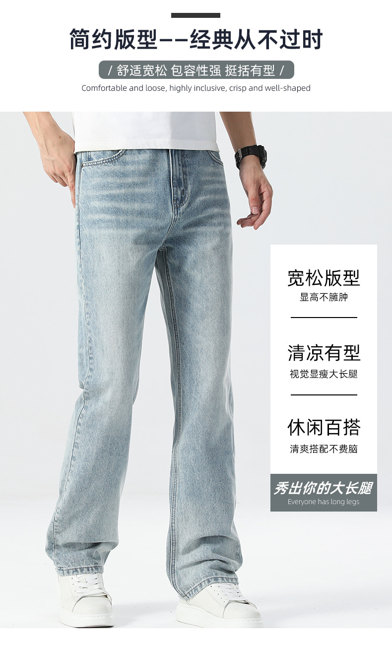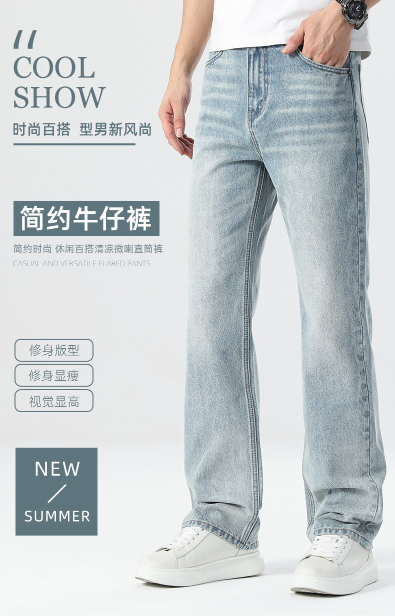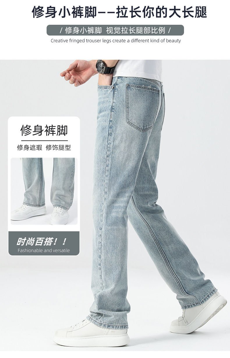 남성용 여름 얇은 루즈핏 스트레이트 진 2025 신상 여름 신축성 슬림핏 캐주얼 롱 팬츠 슬리밍 효과