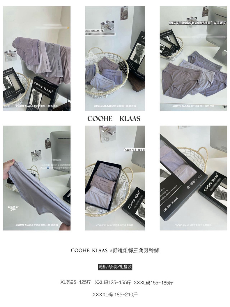 플러스 사이즈 COOHE KLAAS 부드러운 면 남성용 삼각 남성 팬티 원활한 통기성 호흡 속옷 라이브 방송스토어 가기