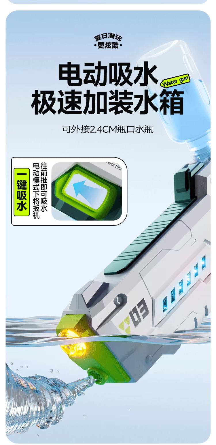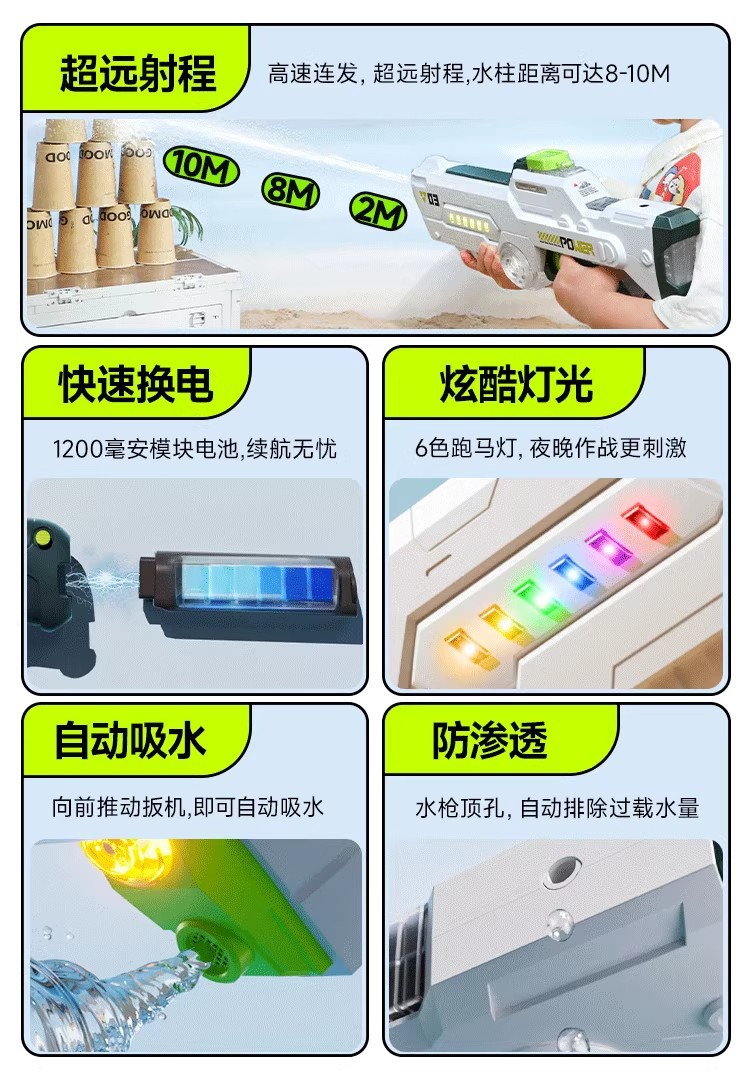 2025 새로운 어린이 펄스 전기 연속 물총 완전 자동 흡수성 고압 물 스프레이 물총 물 장난감스토어 가기