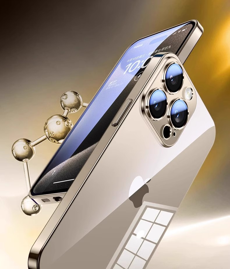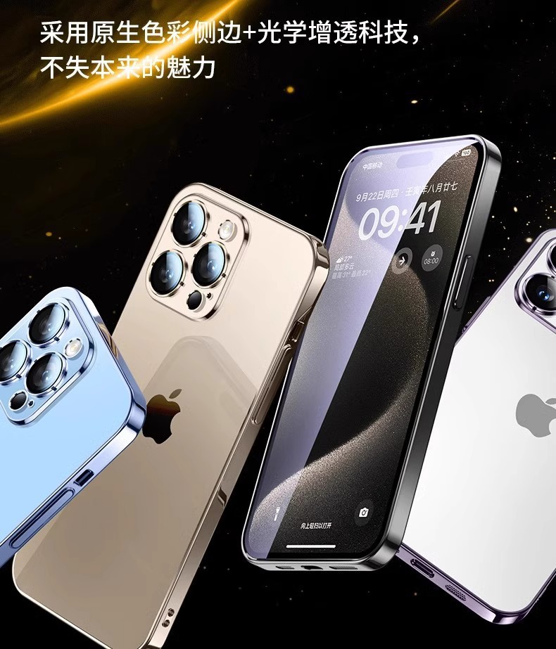 전기도금된 PC 소재로 제작된 iPhone17 휴대폰 케이스, 투명한 풀커버 애플 16ProMax용 렌즈 필름 보호 케이스 포함스토어 가기