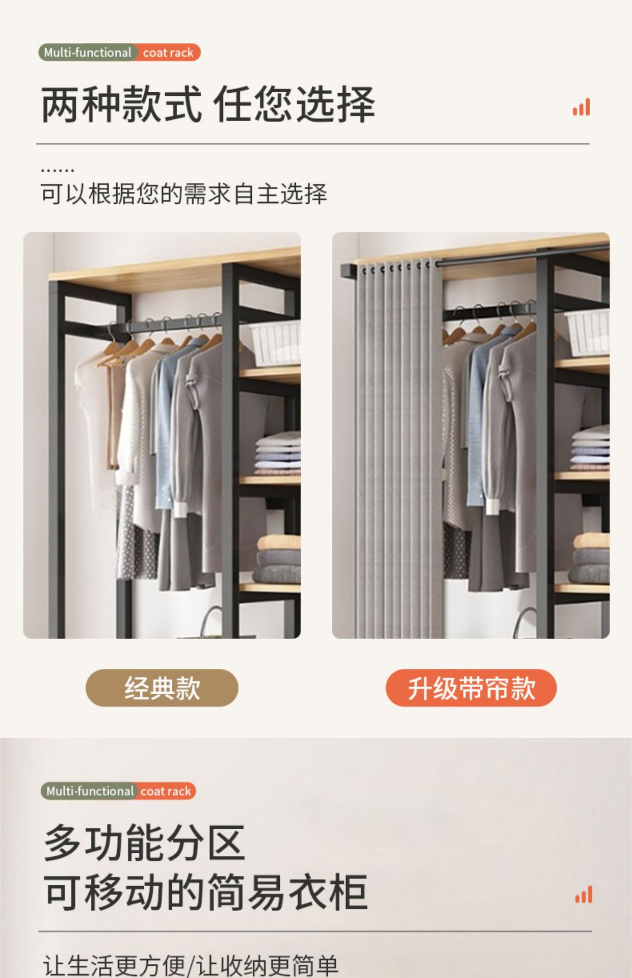 옷장 강철 프레임 구조 간단한 조립 천 옷장 홈 침실 강력하고 내구성이 뛰어난 작은 아파트 보관 캐비닛 옷장