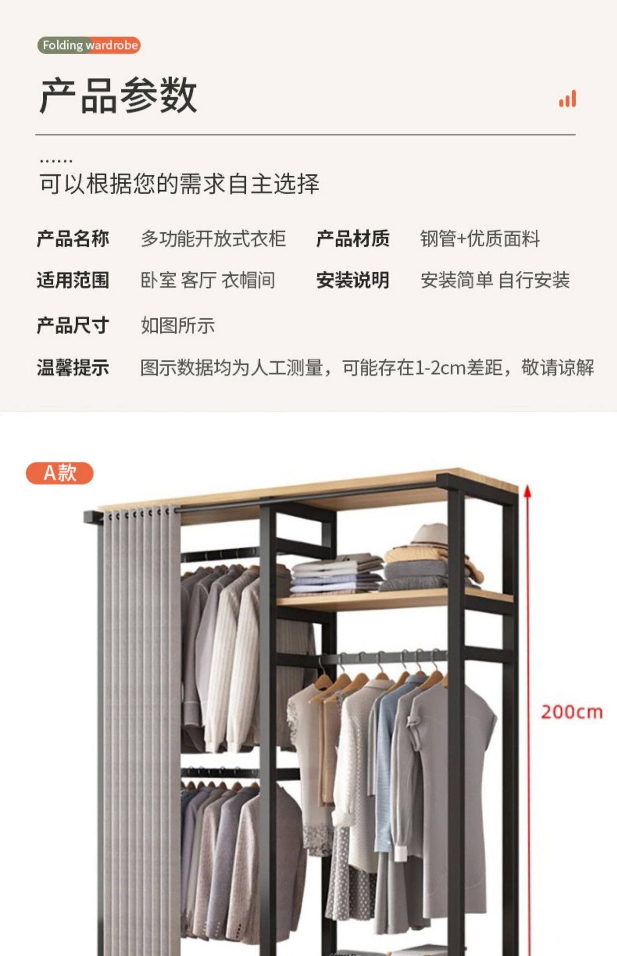 옷장 강철 프레임 구조 간단한 조립 천 옷장 홈 침실 강력하고 내구성이 뛰어난 작은 아파트 보관 캐비닛 옷장스토어 가기