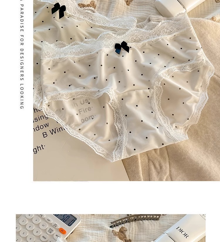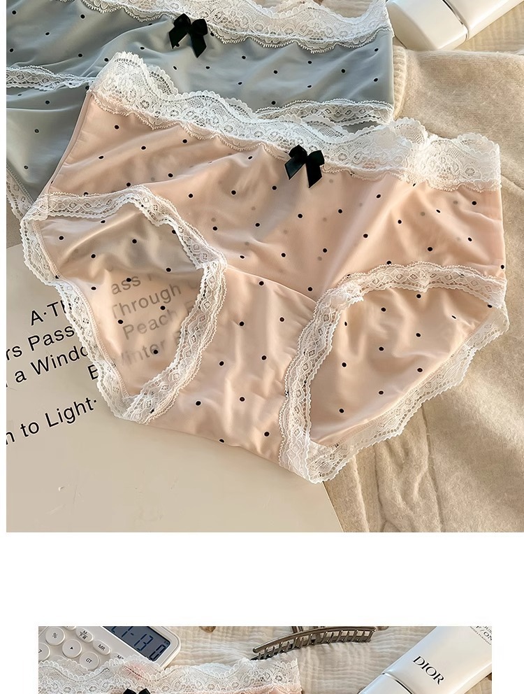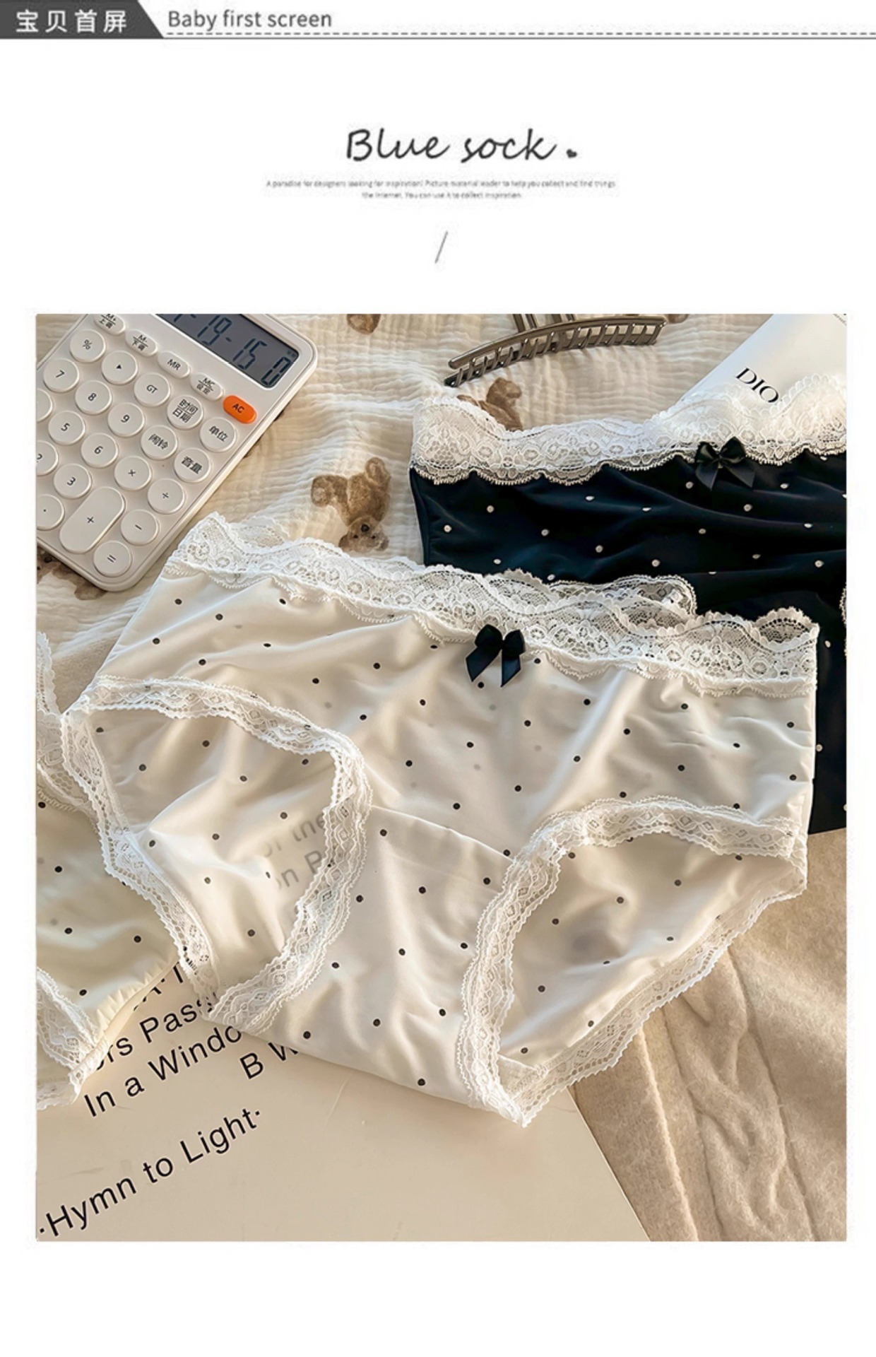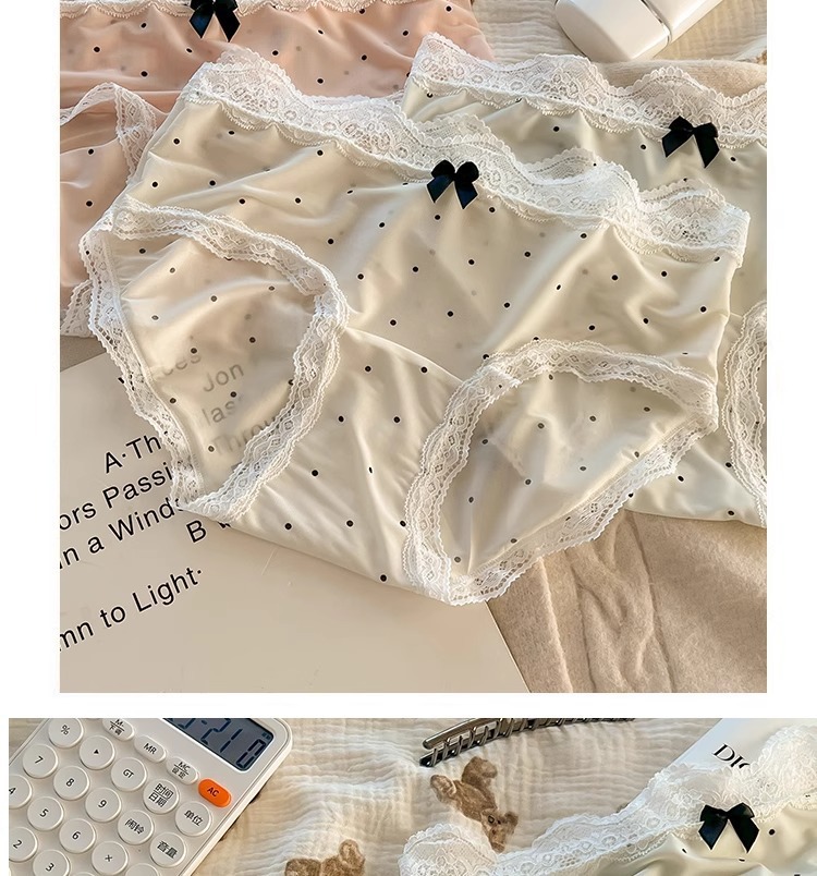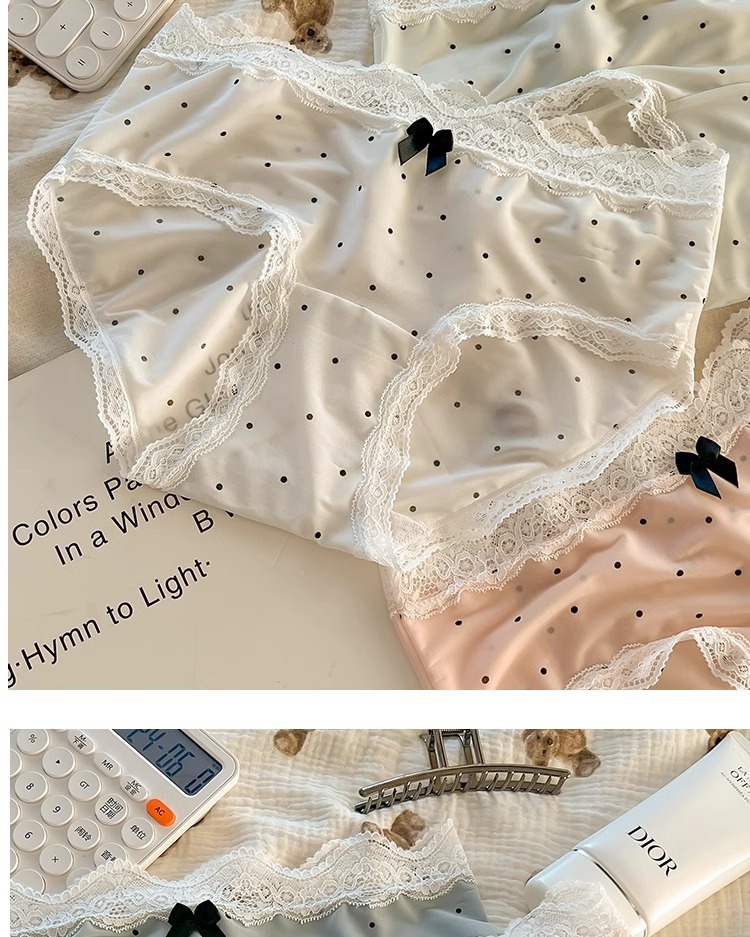 프랑스 복고풍 폴카 도트 얼음 실크 소녀 속옷 섹시한 레이스 항균 가랑이 원활한 달콤한 학생 여성 팬티