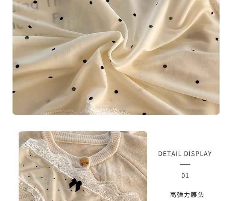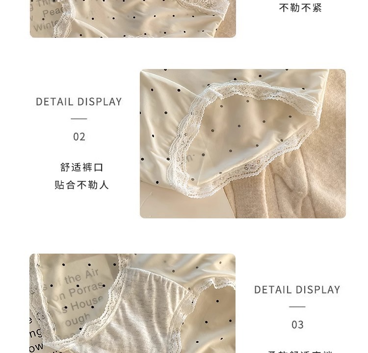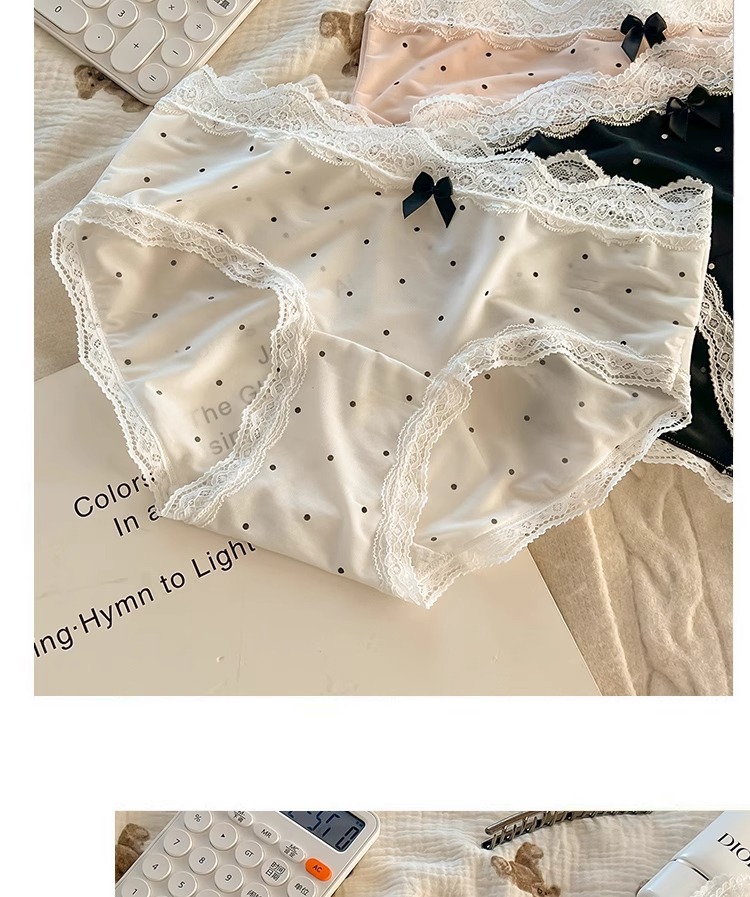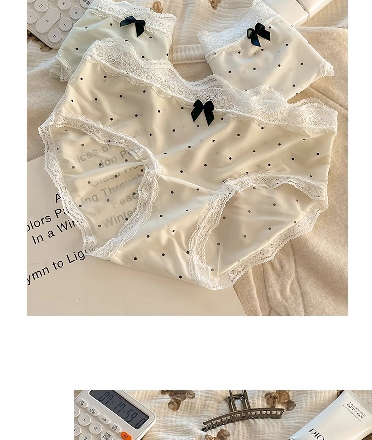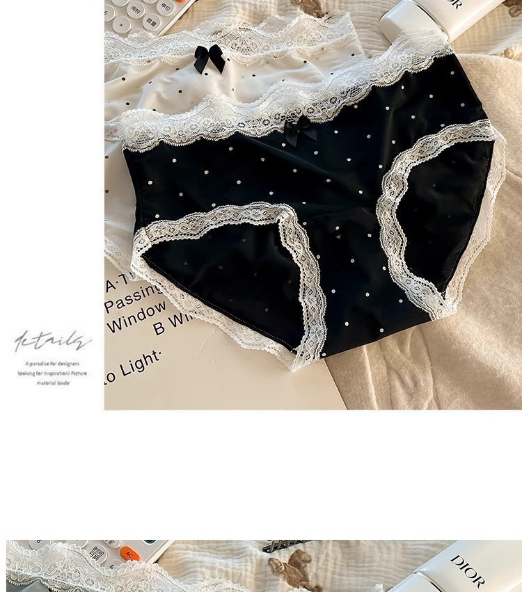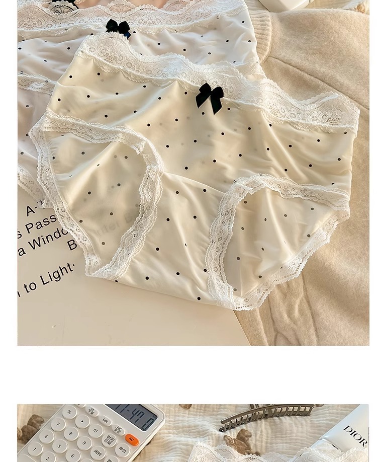 프랑스 복고풍 폴카 도트 얼음 실크 소녀 속옷 섹시한 레이스 항균 가랑이 원활한 달콤한 학생 여성 팬티