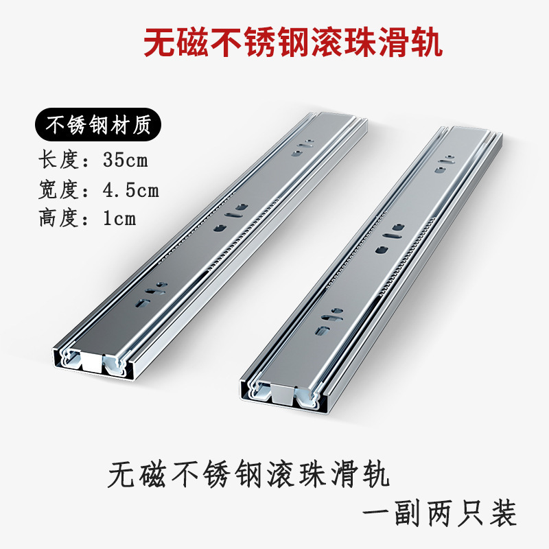 • [스테인리스 스틸] 저소음 35mm 슬라이드 레일 한 쌍 [나사 + 케이블 타이 포함]