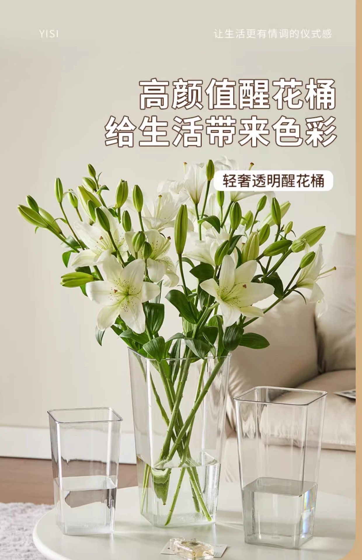 새로운 꽃 양동이 투명 아크릴 꽃집 깊은 물 대형 양동이 플라스틱 꽃병 두꺼운 드롭 배송