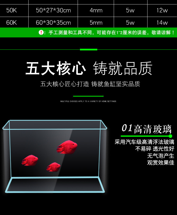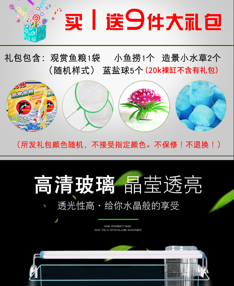 Jinjing 5라인 초백색 유리 수조, 생태 스트림, 가정 거실 수족관 거북이 수조, 벌거벗은 수조, 시각적이고 내구성