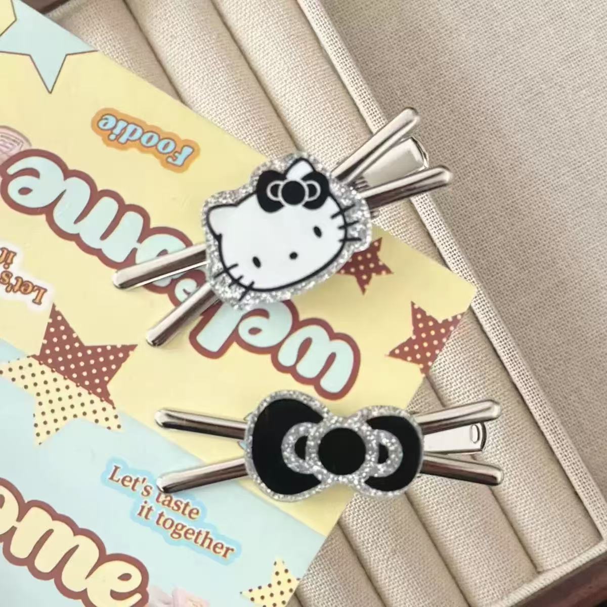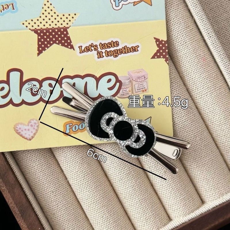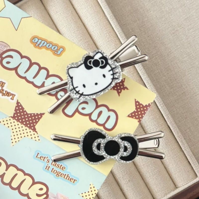 블랙 글리터 고양이 크로스 머리핀 일본식 심플 스위트 쿨 스타일 소녀 앞머리 사이드 클립 머리핀 헤어 액세서리