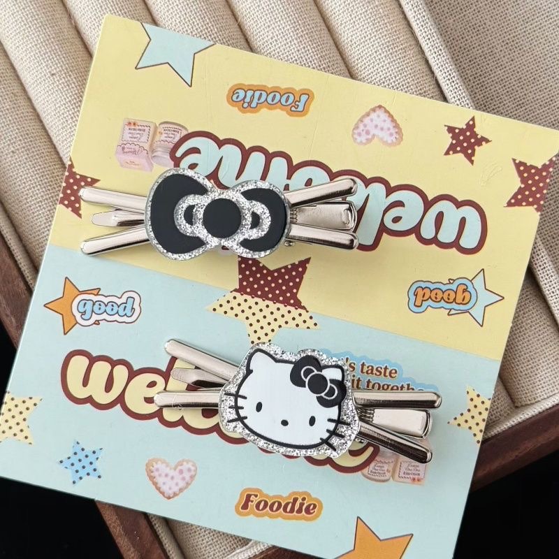 블랙 글리터 고양이 크로스 머리핀 일본식 심플 스위트 쿨 스타일 소녀 앞머리 사이드 클립 머리핀 헤어 액세서리스토어 가기